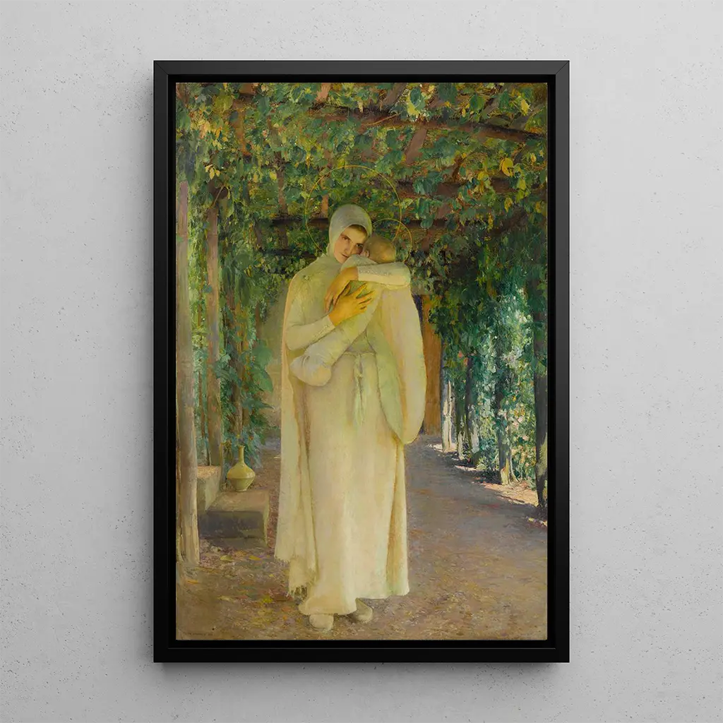 Pascal-Adolphe-Jean Dagnan-Bouveretin Madone La Treille on teos, joka kutsuu mietiskelyyn. Tässä taidegrafiikassa pastellisävyjen pehmeys sekoittuu pehmeään valoon, luoden rauhoittavan tunnelman. Sävellys on huolellisesti tasapainotettu, korostaen Neitsyt Marian hahmoa, jota ympäröivät herkkäkasvuiset kukat. Hienovaraiset yksityiskohdat kankaiden laskoksissa ja kasvonilmeissä kertovat poikkeuksellisesta taidosta. Tämä taidegrafiikka La Treille -maalauksesta tarjoaa syvän sukelluksen henkiseen maailmaan, jossa jokainen elementti vaikuttaa kertovan tarinan hartaudesta ja hellyydestä.