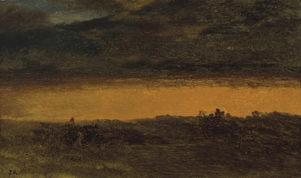 John Frederick Kensett, Hudson River School -liikkeen merkittävä hahmo, oli keskeisessä roolissa yhdysvaltalaisen maisemataiteen kehittymisessä 1800-luvulla. Hänet inspiroi amerikkalaisten maisemien kauneus ja eurooppalaisten mestarien tekniikat, minkä ansiosta hän kehitti ainutlaatuisen tyylin, joka yhdistää realismia ja romantiikkaa. Hänen uransa, joka sisälsi matkoja Yhdysvalloissa ja Euroopassa, antoi hänelle mahdollisuuden tutkia erilaisia valoja ja ilmapiirejä, rikastuttaen siten hänen teostaan. "Paysage rouge" kuvaa täydellisesti hänen taiteellista lähestymistapaansa, jossa luonto muuttuu inspiraation ja pohdinnan lähteeksi.
