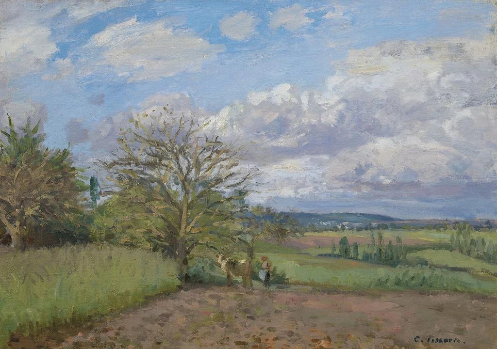 Maisemakuva lehmän kanssa - Camille Pissarro