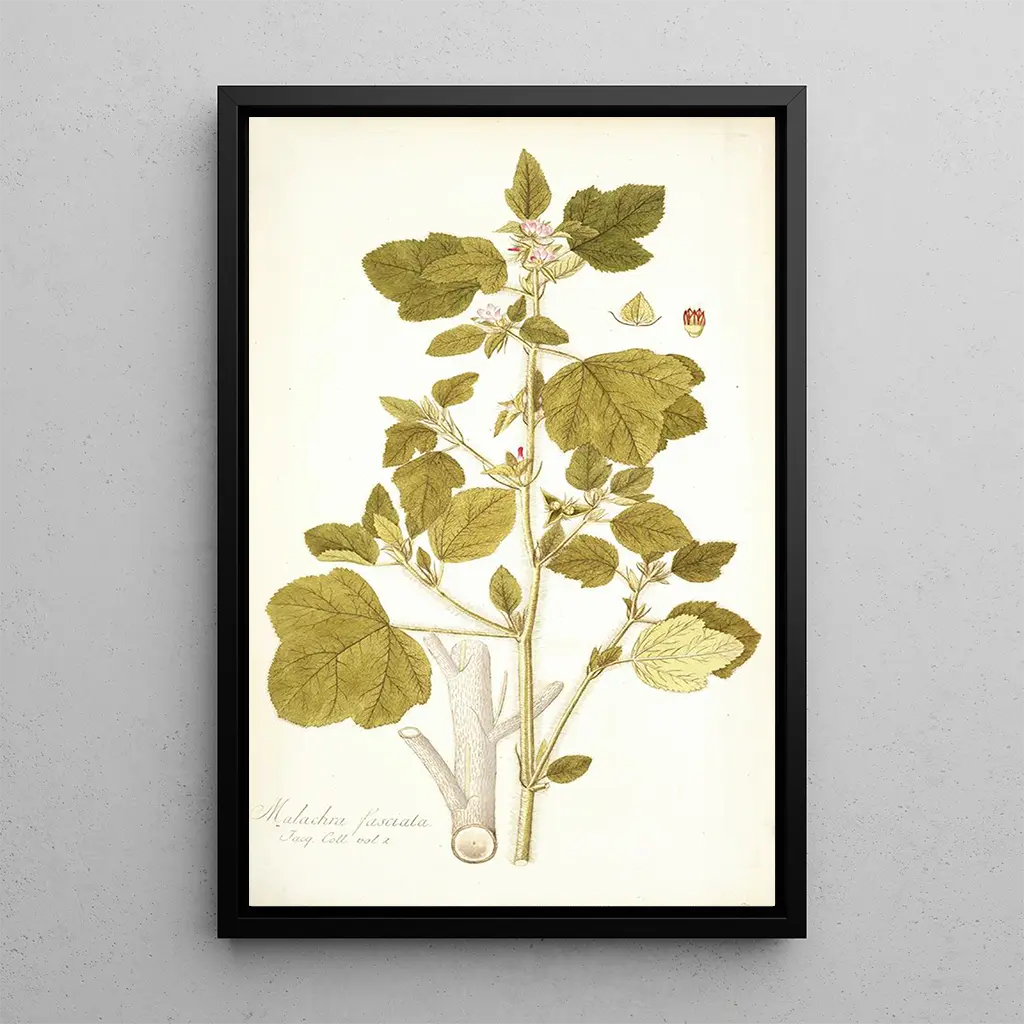 Malachra fasciata -taidegrafiikka, jonka on luonut Nikolaus Joseph Freiherr von Jacquin, johdattaa meidät rehevään maailmaan, jossa luonto ilmaisee itseään loistokkaasti. Tämä taidegrafiikka, joka on täynnä yksityiskohtia, korostaa tämän trooppisen kasvin herkkiä lehtiä ja värikkäitä kukkia. Vihreän, keltaisen ja violetin sävyt kietoutuvat harmonisesti yhteen, luoden sekä rauhoittavan että virkistävän tunnelman. Taiteilijan tekniikka, joka yhdistää kasvitieteellisen tarkkuuden ja taiteellisen herkkyyden, kutsuu meitä ihailemaan kasvilajin hetkellistä kauneutta. Jokainen sivellinvedos tuntuu vangitsevan valon, kunnioittaen luonnon loistokkuutta.