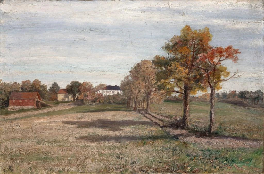 "Manoir à l'extérieur de Holmestrand" de Frederik Collett est une œuvre qui évoque la tranquillité de la campagne norvégienne. Les teintes douces de vert et de beige se mêlent pour créer un paysage serein, où le manoir s'impose avec élégance au milieu de la nature environnante. La technique de Collett, qui combine le réalisme avec une touche romantique, permet de ressentir la chaleur du soleil sur cette scène idyllique. Les détails minutieux des arbres et des fleurs ajoutent une dimension vivante à cette toile, invitant le spectateur à s'immerger dans ce cadre paisible.