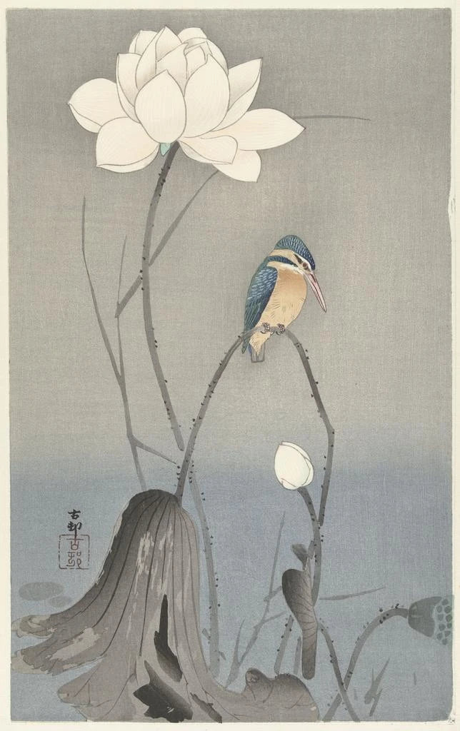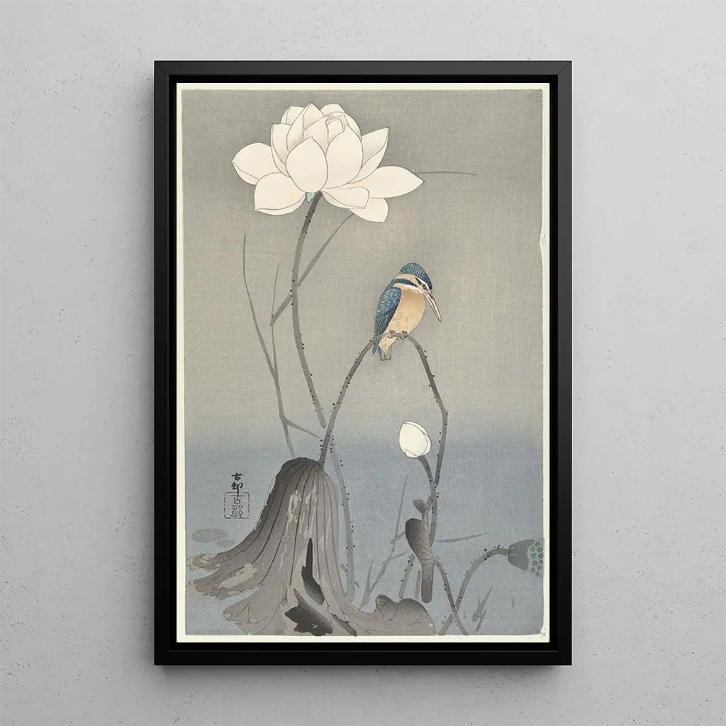 Taidetuloste | Martin-pêcheur avec fleur de lotus - Ohara Koson