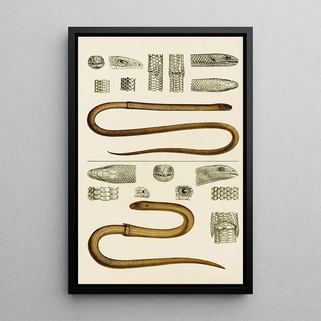Reptiles III -taidegrafiikan reproduktio on koristeellinen kappale, joka rikastuttaa mitä tahansa tilaa, olipa kyseessä olohuone, toimisto tai makuuhuone. Tulostuslaatu takaa kirkkaat värit ja tarkat yksityiskohdat, tarjoten merkittävän uskollisuuden alkuperäiselle teokselle. Sisällyttämällä tämän taulun sisustukseesi lisäät eleganssia ja oppineisuutta, samalla herättäen keskusteluja luonnosta ja biodiversiteetistä. Tämän teoksen esteettinen viehätys piilee sen kyvyssä vangita mielikuvitus, tehden tästä taidegrafiikan reproduktiosta ihanteellisen valinnan niille, jotka arvostavat taidetta ja tiedettä.