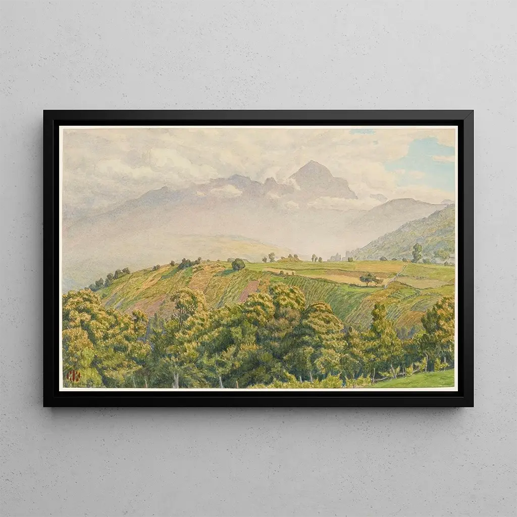 Dans cette reproduction de Matin brumeux sur le Charvin, Henri Rivière nous transporte au cœur d'un paysage montagnard enveloppé d'une douce brume. Les nuances de bleu et de gris se mêlent harmonieusement, créant une atmosphère à la fois sereine et mystérieuse. La technique du pastel, utilisée avec finesse, permet de capturer la lumière diffuse de l'aube, tandis que les contours flous des montagnes ajoutent une dimension éthérée à l'œuvre. Rivière, en véritable poète de la nature, nous invite à contempler ce moment fugace où le jour se lève, révélant la beauté sauvage des Alpes.