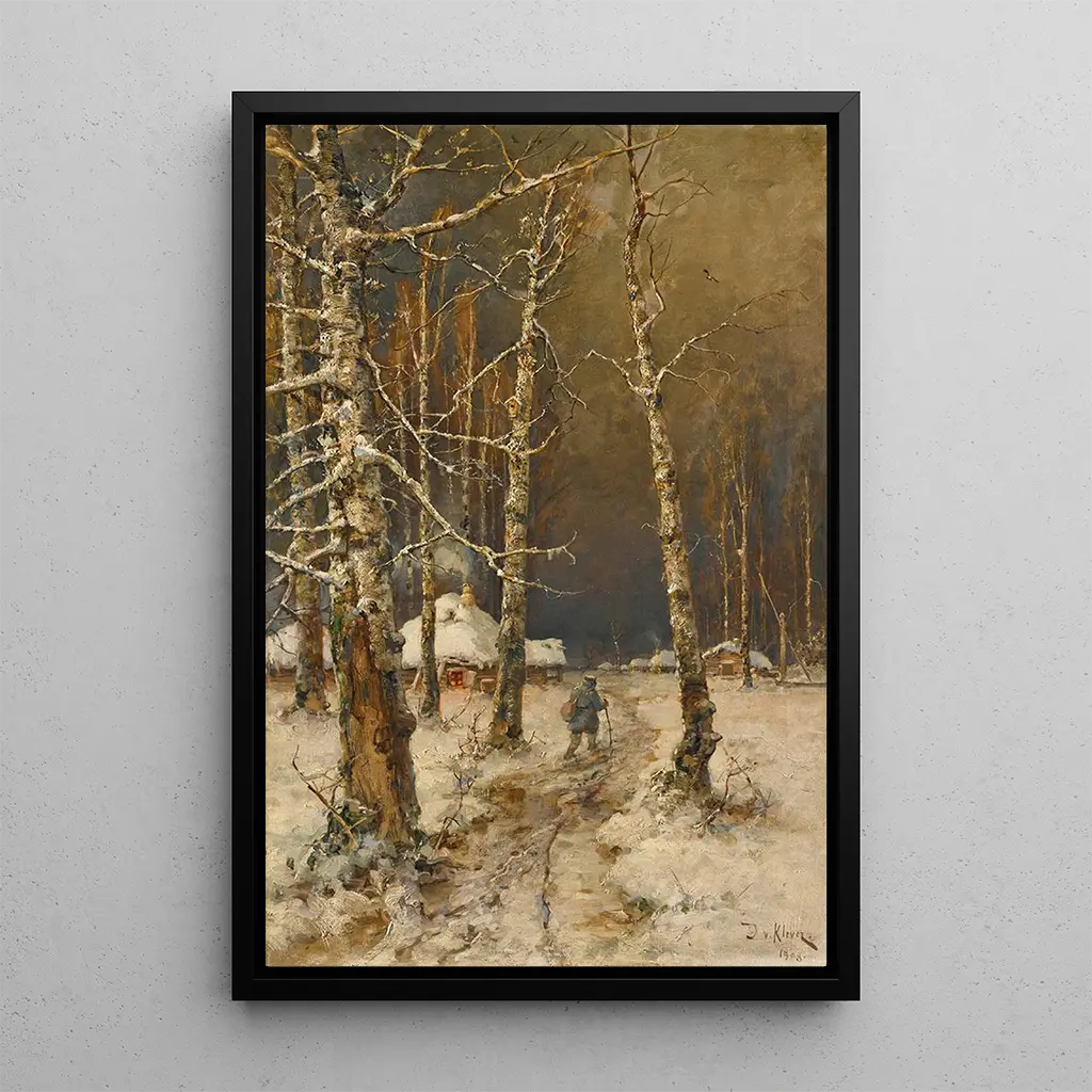 Né en 1850 en Russie, Julius Sergius Klever est reconnu pour ses paysages d'hiver qui reflètent la beauté sauvage des contrées nordiques. Influencé par les grands maîtres de la peinture paysagère, il développe un style unique, alliant réalisme et romantisme. Son œuvre se situe à la charnière du XIXe et du XXe siècle, période marquée par une quête de la nature et une exploration des émotions humaines face à celle-à. Klever a su capturer l'essence de son époque, offrant une vision poétique de la nature, tout en s'inscrivant dans le courant du réalisme. Ses tableaux, tels que "Voyageur dans la neige", témoignent de son talent à évoquer des atmosphères intimes et contemplatives.