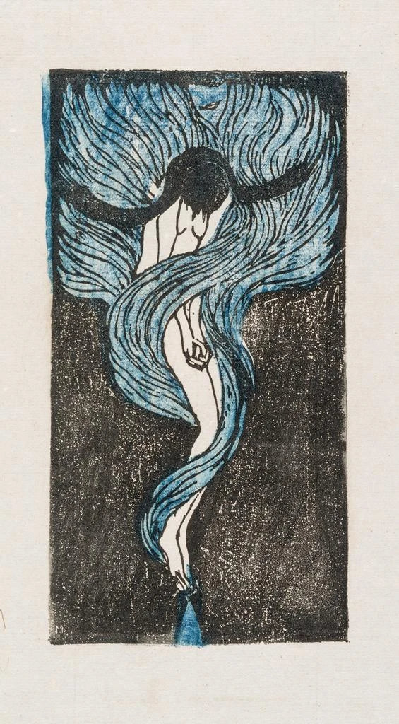 Tanaka Kyōkichin taidegrafiikka Mélankolia on teos, joka kutsuu pohdintaan. Pehmeät sävyt ja sinisen vivahteet luovat nostalgiaa huokuvan tunnelman, kun taas herkästi ja sulavasti muotoutuvat muodot luovat rauhoittavan liikkeen. Taiteilijan tekniikka, joka yhdistää vesiväriä ja mustetta, herättää eloon unenomaisia maisemia, joissa jokainen yksityiskohta vaikuttaa kertovan tarinan. Teos vangitsee ihmisen tunteen ytimen, upottaen katsojan maailmaan, jossa melankolia muuttuu kauneuden lähteeksi.