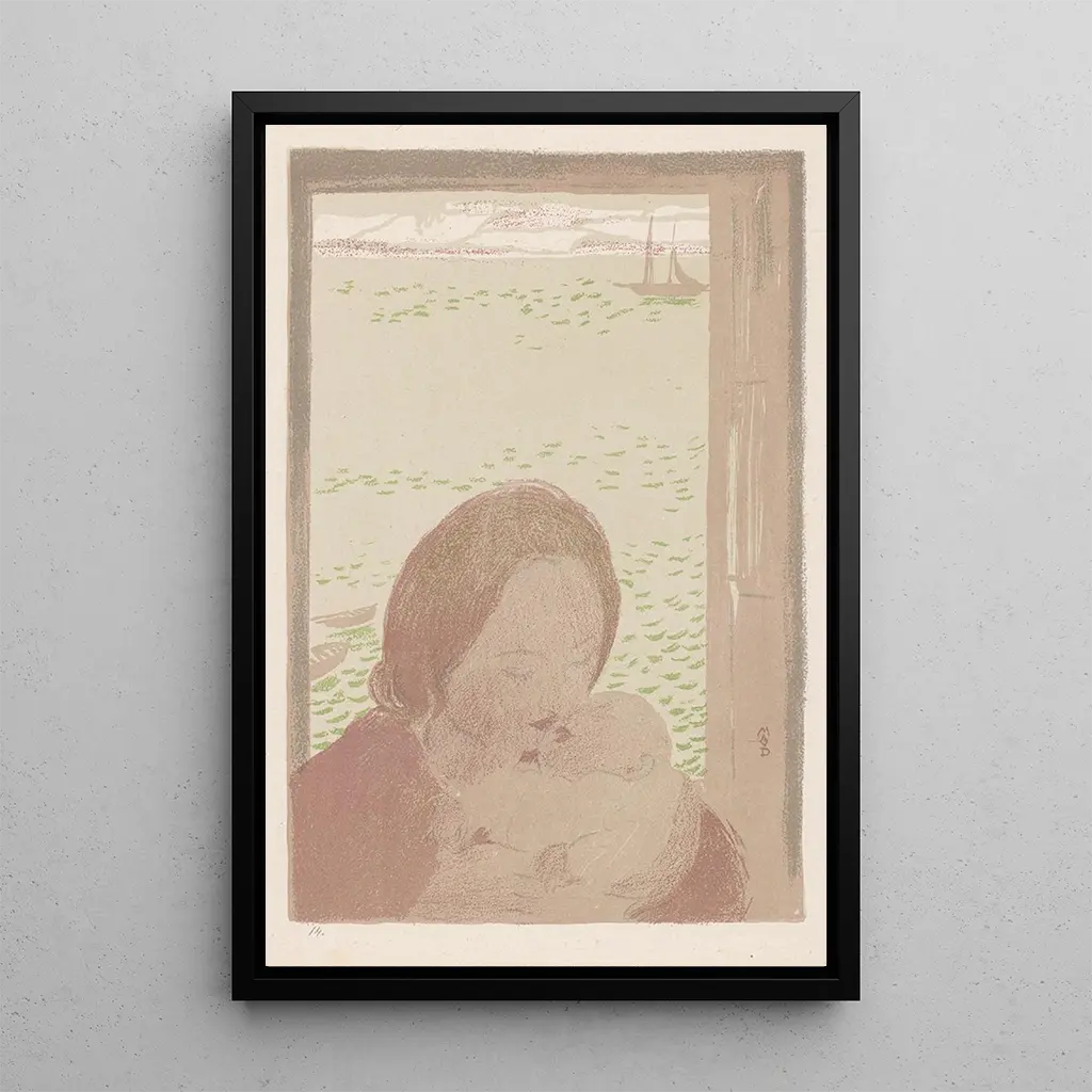 Dans "Mère avec enfant près de la mer", Maurice Denis dépeint une scène empreinte de tendresse et de douceur, où une mère veille sur son enfant, tous deux baignés par la lumière dorée du soleil couchant. Les nuances de bleu et de sable évoquent la tranquillité de la mer, tandis que les formes arrondies et douces des personnages créent une atmosphère de chaleur et de protection. La technique de Denis, alliant impressionnisme et symbolisme, permet de ressentir l'émotion pure qui émane de cette interaction, faisant de cette toile une véritable célébration de la maternité.