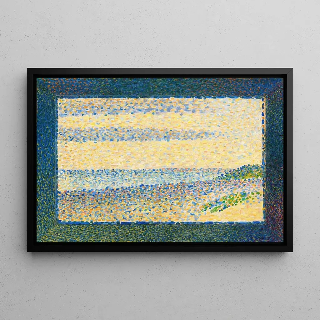 Gravelines-merimaisema: merenkulkusymfonia Georges Seurat'n Gravelines-merimaisema-taidegrafiikka on kiehtova teos, joka herättää esiin Ranskan rantojen rauhallisuuden. Pistemaalauksen sävyillä Seurat onnistuu luomaan rauhallisen ilmapiirin, jossa meri ja taivas kohtaavat sinisten ja vihreiden sävyjen asteittaisessa vaihtelussa. Kompositio, hyvin tasapainoinen, kutsuu pohdintaan, kun taas taustalla olevat hahmot lisäävät tähän luonnonmaisemaan inhimillisen ulottuvuuden. Tämä taidegrafiikka, sekä yksinkertainen että monimutkainen, todistaa Seurat'n teknisestä hallinnasta ja hänen kyvystään vangita valo ja tunne. Georges Seurat: pistemaalauksen pioneeri Georges Seurat, syntynyt 1859, on ikoninen taiteilija neo-impressionismin liikkeessä. Hänen innovatiivinen lähestymistapansa pistemaalaukseen, jossa pieniä väritahroja sovelletaan vierekkäin, mullisti hänen aikansa maalaustaiteen. Seurat'n vaikutteet tulivat tieteellisistä teorioista väristä ja valosta, mikä mahdollisti hänen luoda visuaalisesti vaikuttavia teoksia. Gravelines-merimaisema, valmistunut vuonna 1890, kuvaa täydellisesti hänen erottuvaa tyyliään ja kiinnostustaan merimaisemiin, aiheeseen, joka kiehtoo häntä koko uransa ajan. Monipuolinen koristeellinen taidegrafiikka Gravelines-merimaisema-taidegrafiikan taidegrafiikka on täydellinen koristeellinen valinta niille, jotka haluavat tuoda taiteen kosketuksen sisätiloihinsa. Olipa kyseessä olohuone, toimisto tai makuuhuone, tämä kangas valaisee tilan rauhoittavalla väripalettillaan. Tulostuksen laatu takaa vaikuttavan uskollisuuden alkuperäisteoksen yksityiskohdille, jolloin voi nauttia sen esteettisestä viehätyksestä. Sisällyttämällä tämän taidegrafiikan osaksi sisustustasi luot inspiroivan ympäristön, joka juhlistaa luonnon kauneutta ja Seurat'n taidetta.