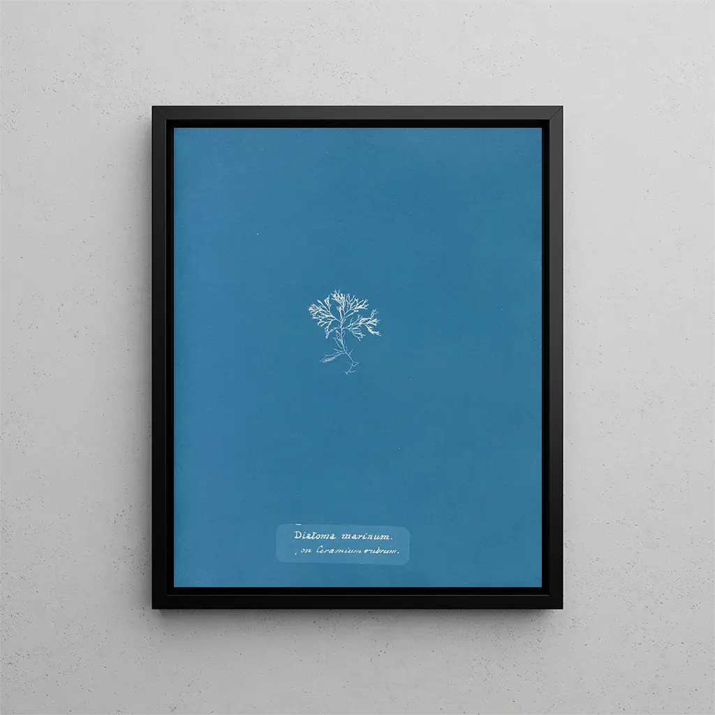 Reproduction Diatomées marines sur Ceramium rouge - Anna Atkins – Johdanto kiehtovaan maailmaan Luovan taiteen historian kiehtovassa universumissa jotkin teokset erottuvat kyvyllään vangita luonnon ydin. "Diatomées marines sur Ceramium rouge" Anna Atkinsilta on yksi näistä teoksista, jotka ylittävät pelkän taide-esineen ja muuttuvat todelliseksi meribiologian juhlistukseksi. Tämä teos, valmistunut vuonna 1853, on ikoninen esimerkki valokuvauksen innovatiivisesta käytöstä tieteen ja taiteen palveluksessa. Atkins, kasvitieteellisen valokuvauksen pioneeri, onnistui yhdistämään nämä kaksi alaa poikkeuksellisella hienovaraisuudella, tarjoten ikkunan maailmaan, joka on usein näkymätön silmillämme. Teoksen tyyli ja ainutlaatuisuus "Diatomées marines sur Ceramium rouge" -teoksen ainutlaatuisuus piilee sen erikoistekniikassa, joka yhdistää cyanotypian prosessin hienostuneeseen koostumukseen. Käyttämällä merileviä tukimateriaalina Atkins luo visuaalisen harmonian, jossa orgaaniset muodot sekoittuvat syvän sinisen ja kirkkaan punaisen sävyihin. Tämä vaikuttava kontrasti vangitsee heti katseen ja kutsuu tarkkaavaiseen pohdintaan. Diatomit, nämä uskomattoman kauniit mikro-organismit, on tässä esitetty tieteellisen tarkasti, säilyttäen samalla esteettisen arvokkuuden. Jokainen yksityiskohta ja tekstuuri on huolellisesti esitetty, mikä kertoo tarkasta havainnoinnista ja syvästä kunnioituksesta luontoa kohtaan. Teos ei ole vain yksinkertainen esitys; se on kutsu tutkia vedenalaisten elämän salaisuuksia. Taiteilija ja hänen vaikutuksensa Anna Atkins, usein ensimmäisenä naisvalokuvaajana pidetty, on ollut ratkaisevassa roolissa valokuvauksen kehittymisessä taiteellisena ja tieteellisenä mediana. Hänen intohimonsa luonnontieteisiin, yhdistettynä kiinnostukseensa valokuvatekniikoihin, mahdollisti teosten luomisen, jotka ovat sekä tieteellisiä dokumentteja että taiteellisia luomuksia. Julkaistuaan "Photographs of British Algae" vuonna 1843 hän avasi tien uudelle lähestymistavalle kasvitieteessä, jossa taide ja tiede elävät harmonisesti rinnakkain. Hänen vaikutuksensa jatkuu tänään, inspiroiden monia nykytaiteilijoita, jotka tutkivat luonnon, tieteen ja taiteen risteyksiä. Atkins on siten laajentanut ymmärrystämme valokuvauksesta, osoittaen, että