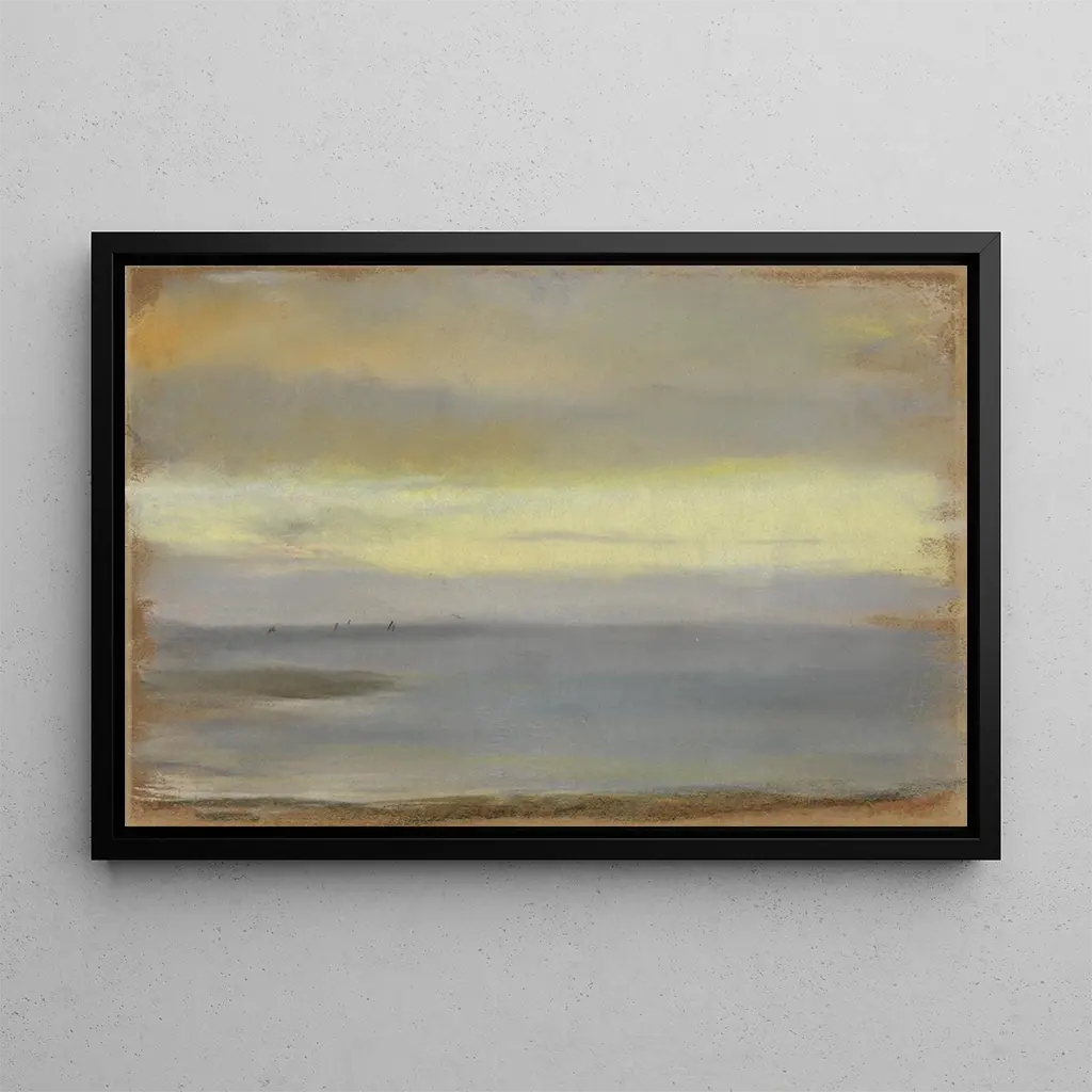 Edgar Degas, impressionismin merkittävä hahmo, erottui ainutlaatuisella lähestymistavallaan valoon ja liikkeeseen. Hän syntyi vuonna 1834 Pariisissa ja sai vaikutteita klassisen maalaustaiteen mestareilta, mutta kehitti oman tyylinsä. Hänen intohimonsa modernin elämän kuvaamiseen, erityisesti baletin ja arkipäivän kohtauksien kautta, näkyy myös hänen merimaisemissaan. "Marine, auringonlasku" kuvaa täydellisesti hänen kykyään vangita ohikiitäviä hetkiä, tehden hänestä merkittävän 1800-luvun taiteilijan.