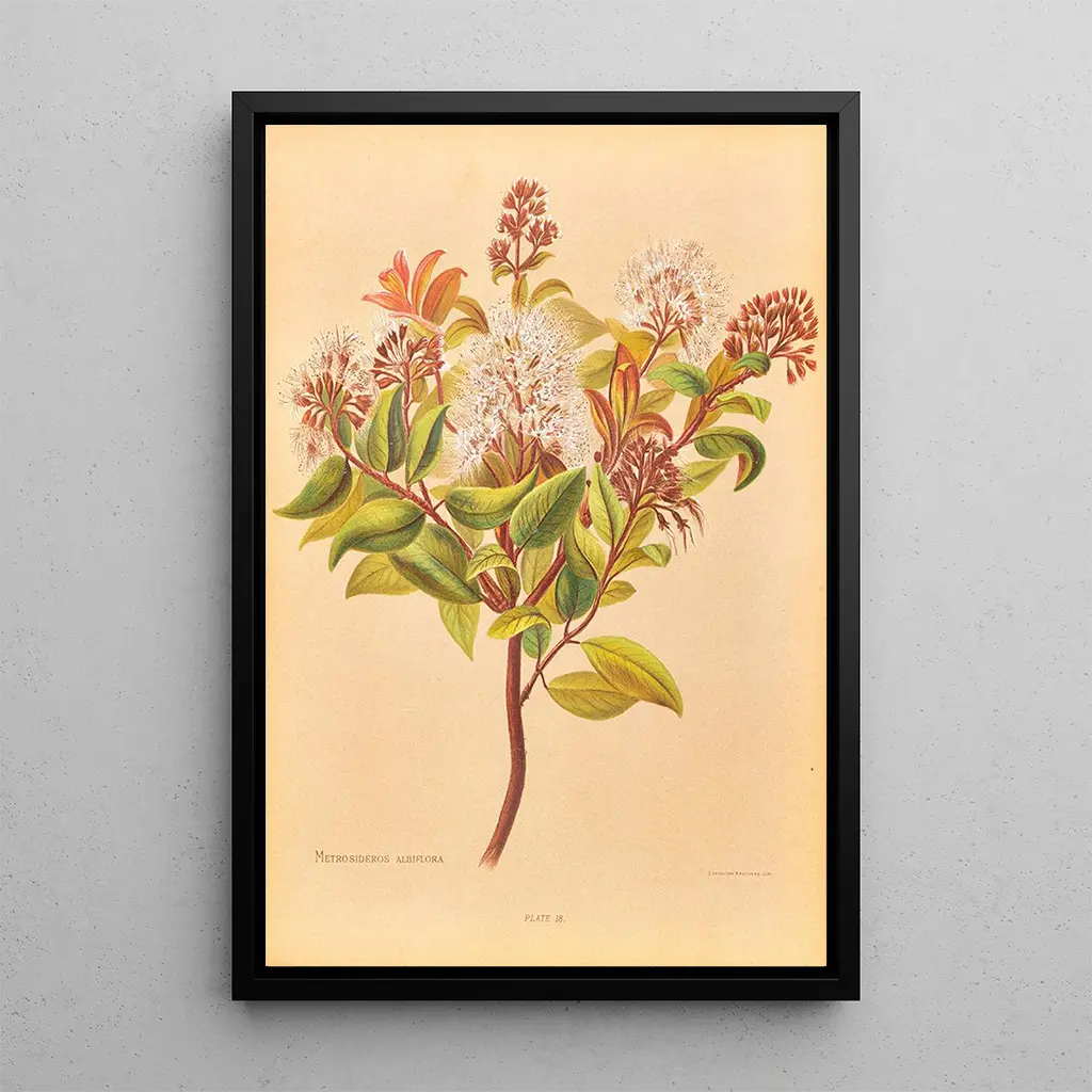 Metrosideros albiflora -taidegrafiikan reproduktio on ihanteellinen sisustuselementti erilaisiin tiloihin, olipa kyseessä olohuone, toimisto tai makuuhuone. Sen tulostuslaatu takaa upean uskollisuuden alkuperäisen teoksen väreille ja yksityiskohdille, tuoden luonnon osaksi sisätilojasi. Tämän taulun esteettinen vetovoima piilee sen kyvyssä piristää seinää ja luoda rauhallinen tunnelma. Valitsemalla tämän reproduktion, teet valinnan taulusta, joka ei ainoastaan kaunista, vaan kertoo myös tarinan, kukkivasta kauneudesta ja taiteesta.