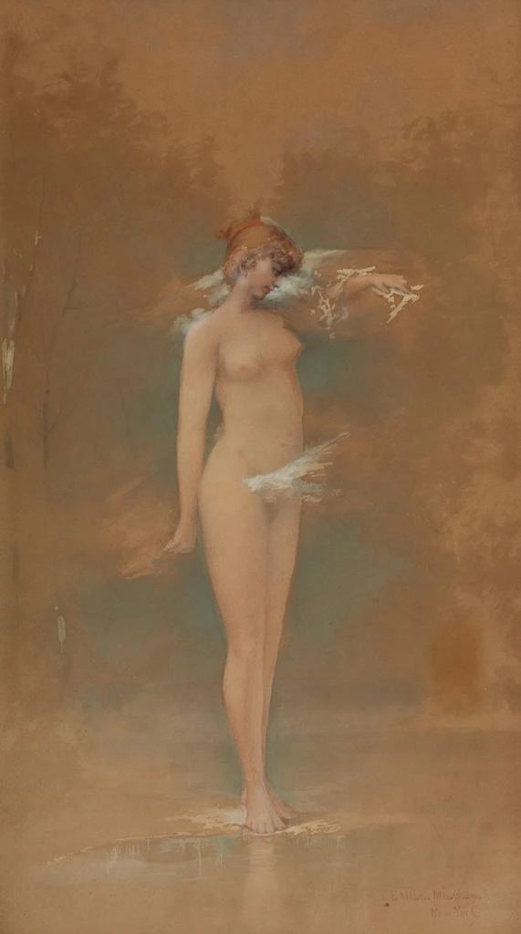 Émile Milo, aktiivinen 1800-luvun lopulla, on ranskalainen taidemaalari, jonka työ kuuluu symbolismin liikkeeseen. Hän on saanut vaikutteita mytologiasta ja luonnosta, ja pyrkii ilmaisemaan syviä tunteita teostensa kautta. Hänen esityksensä naisfiguureista, usein mytologian inspiroimia, osoittaa kiinnostuksensa kauneuteen ja sensuellisuuteen. "Nymphe des bois" kuvastaa täydellisesti hänen tyyliään, yhdistäen hienostuneen tekniikan runolliseen maailmankuvaan. Milo'n teokset korostavat jatkuvaa etsintää harmonian löytämiseksi ihmisen ja luonnon välillä, mikä antaa hänelle merkittävän paikan taiteen historiassa.