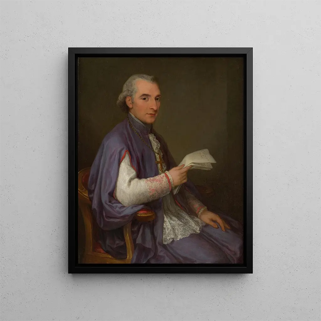 La composition de "Monseigneur Giuseppe Spina" se distingue par son harmonie et sa délicatesse. Kauffman utilise une palette de couleurs douce qui évoque la lumière naturelle, créant une atmosphère apaisante et raffinée. Le regard pénétrant du prélat, associé à sa posture majestueuse, confère à l'œuvre une profondeur psychologique rare. Les détails minutieusement travaillés, tels que les drapés de la robe ecclésiastique et les accessoires soigneusement choisis, témoignent du savoir-faire exceptionnel de l'artiste. Chaque élément de la toile est pensé pour renforcer la dignité du personnage, tout en révélant la personnalité de Kauffman, qui savait allier sensibilité et technique. Ce portrait est une véritable ode à la beauté et à la noblesse, inscrite dans une tradition artistique qui privilégie la représentation réaliste et la mise en valeur des traits distinctifs de ses sujets.