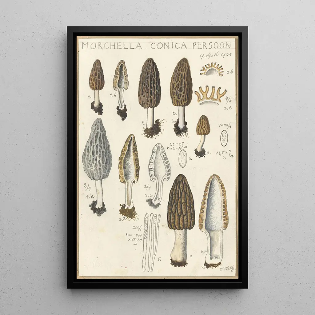 "Morchella conica persoon" -taidegrafiikan reproduktio on täydellinen lisä sisustukseesi, olipa kyseessä olohuone, toimisto tai makuuhuone. Sen poikkeuksellinen tulostuslaatu ja uskollisuus alkuperäiselle teokselle takaavat rikastuttavan visuaalisen kokemuksen. Tämä taulu, ainutlaatuisen estetiikkansa ansiosta, tuo luonnon ja rauhan tunteen sisustukseesi, herättäen samalla mielenkiintoa ja uteliaisuutta. Valitsemalla tämän taidegrafiikan, annat tilallesi taiteellisen ulottuvuuden, joka juhlistaa sienten kauneutta ja luonnon monimuotoisuutta.