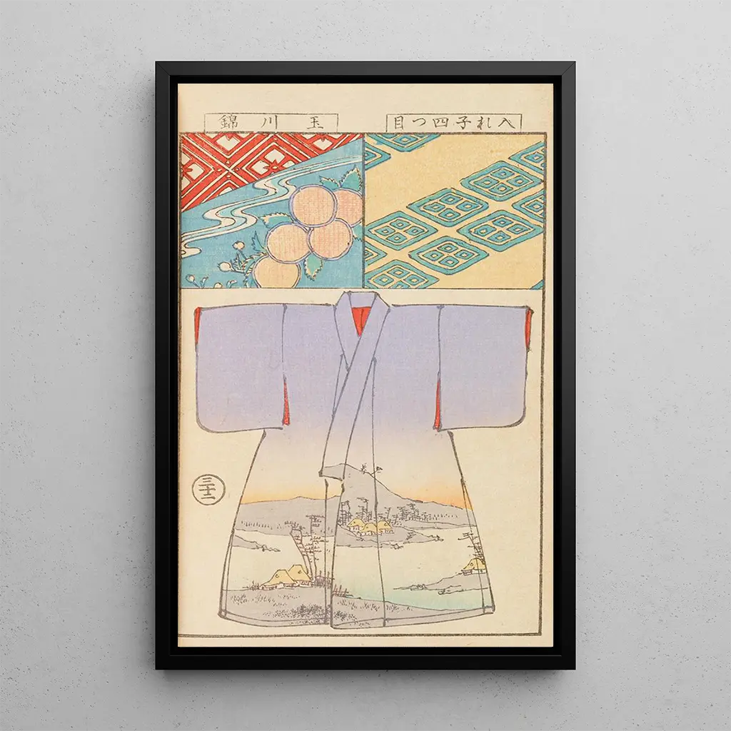 Moyo bijutsu benran Pl34 -taidegrafiikka viedä meidät eloisaan maailmaan, jossa värit kietoutuvat harmonisesti yhteen. Sinisten ja punertavien sävyjen sekoitus yhdistyy hienostuneisiin kuvioihin, luoden dynaamisen ja rauhoittavan tunnelman. Hironobu Asain hallitsema japanilainen puupiirros tekniikka tulee esiin tässä teoksessa loistokkaasti, tarjoten syvyyttä ja tekstuuria, jotka vangitsevat katsojan huomion. Jokainen yksityiskohta, jokainen kaari, tuntuu kertovan tarinan, kutsuen katsojan uppoutumaan tähän tunteiden täyttämään taideteokseen.