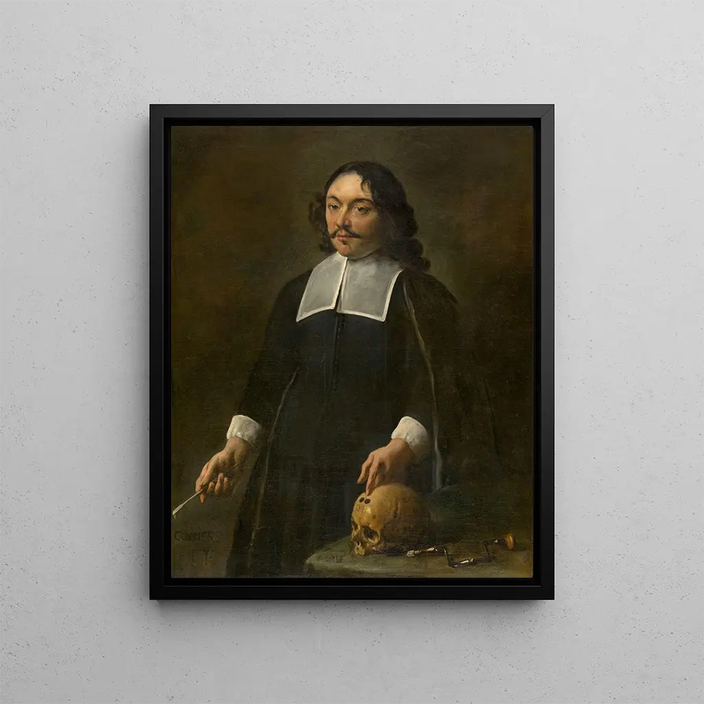 1600-luvun flaamilaista taidetta edustanut Jan Cossiers oli yksi koulukunnan merkittävimmistä edustajista. Hän oli Cornelis de Vosin oppilas ja Rubensin yhteistyökumppani, ja hänet tunnetaan erityisesti kyvystään maalata inhimillisiä ilmeitä, oli kyse sitten uskonnollisista, mytologisista tai realistisista muotokuvista. Tässä muotokuvassa hän osoittaa teknistä taituruuttaan: valon leikki muokkaa kasvoja ja käsiä, ja yksityiskohdat puvusta ja instrumenteista paljastavat tarkkaa havainnointia. Taiteilija ylittää pelkän esittämisen ja luo todellisen luonteen tutkimuksen, joka on täynnä kunnioitusta ja syvällistä psykologista ymmärrystä.