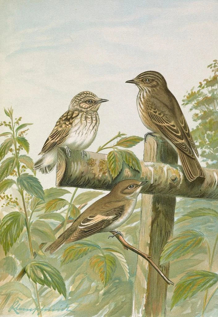 Taidetuloste | Muscicapa grisola Muscicapa atricapilla - Johann Friedrich Naumann
