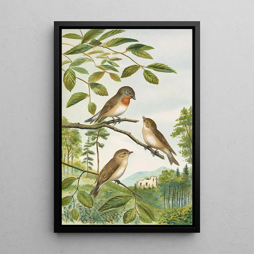 La taidegrafiikka Muscicapa parva Bechst, Johann Friedrich Naumannin teos, kuvaa luonnon hienostuneisuutta ja kauneutta. Tämä taulu esittelee pienen linnun, mustan kottaraisen, jonka pehmeät värit ja yksityiskohtaiset piirteet vangitsevat sen elinympäristön olemuksen. Hienovaraiset ruskean ja beigen sävyt sulautuvat harmonisesti, luoden rauhallisen tunnelman. Vesiväritekniikka, jota käytetään hienovaraisesti, mahdollistaa höyhenpeitteen keveyden ja linnun silmien eloisuuden kuvaamisen. Teos kutsuu rauhalliseen pohdintaan, ikään kuin voisi kuulla tämän linnun melodisen laulun lennossa.