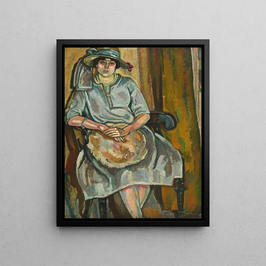 Nainen istuu suuressa hatussa - Maurice Albert Loutreuil