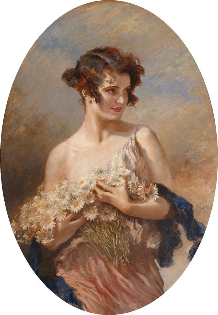 Taidetuloste | Dame avec un bouquet de marguerites - Leopold Schmutzler