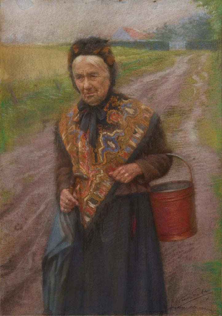 Le tableau "Femme avec panier" de Jef Van de Fackere capture un moment de la vie quotidienne, où la simplicité et la beauté se rencontrent. La femme, vêtue de manière traditionnelle, porte un panier rempli de fruits ou de fleurs, symbole de l'abondance et du travail de la terre. Les couleurs chaudes et terreuses, associées à une lumière douce, créent une atmosphère intime et chaleureuse. La composition, centrée sur le personnage, met en valeur son expression et son interaction avec son environnement, rendant hommage à la vie rurale et à la dignité du travail.