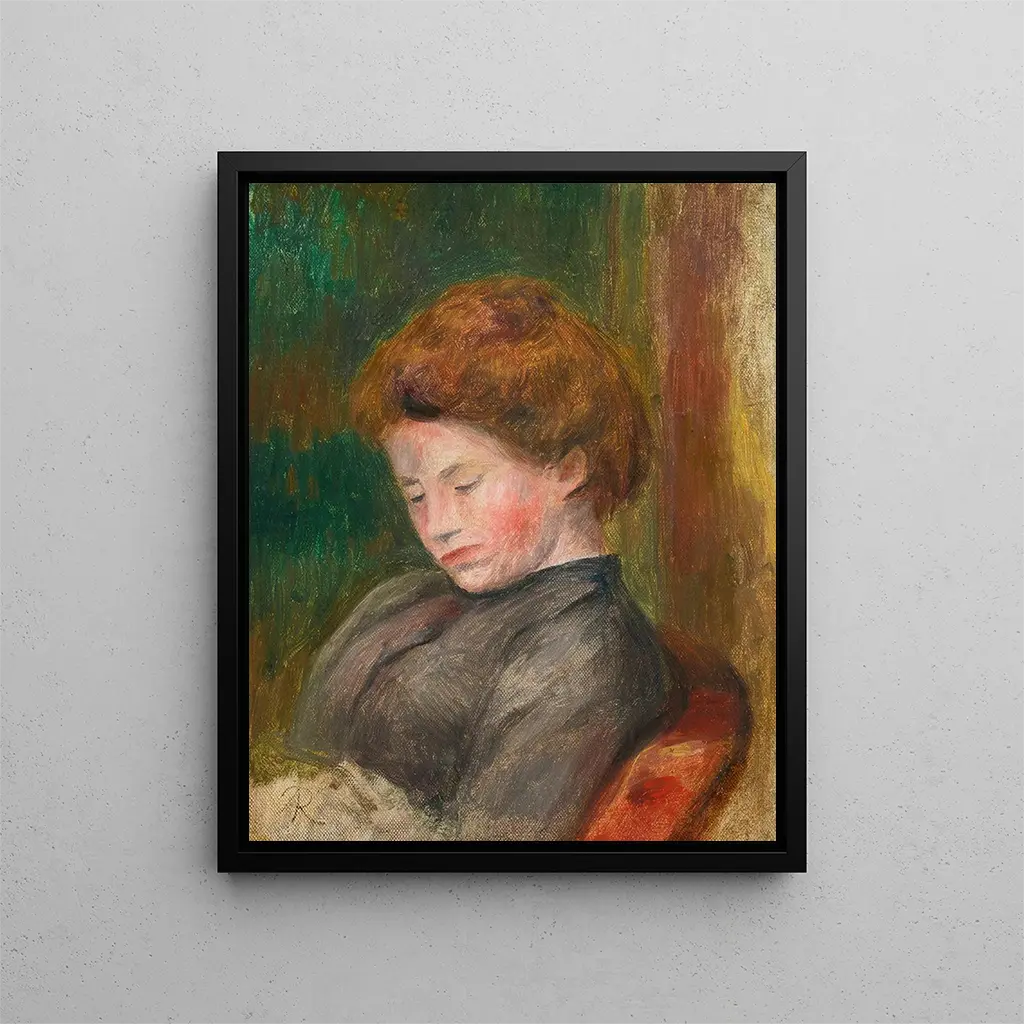 Tässä Pierre-Auguste Renoirin taidegrafiikan uudelleenversiossa hän vangitsee naiseuden olemuksen vertaansa vailla olevalla hienovaraisuudella. Hänen impressionistinen tyylinsä tyypilliset lämpimät ja kirkkaat värit kietovat aiheen pehmeään ja intiimiin ilmapiiriin. Renoirin tekniikka, joka on merkitty sulavilla ja elävillä siveltimenvedoilla, herättää naisen ihon eloon ja luo vaikuttavan kontrastin taustan kanssa. Teos kutsuu pohdintaan, paljastaen ei vain ulkoisen kauneuden, vaan myös syvän emotionaalisen ulottuvuuden, joka koskettaa sielua.