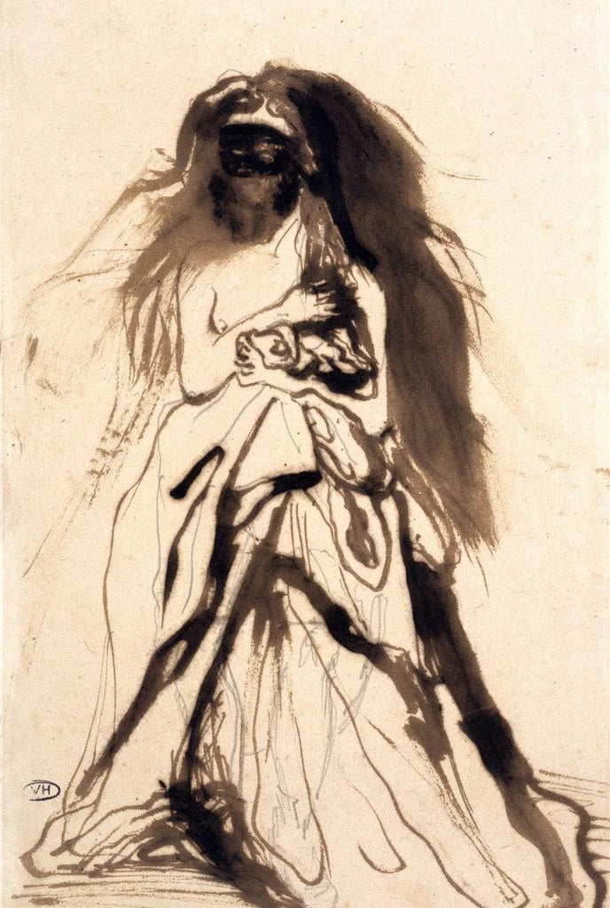 Taidetuloste | Femme masquée retenant son manteau - Victor Hugo