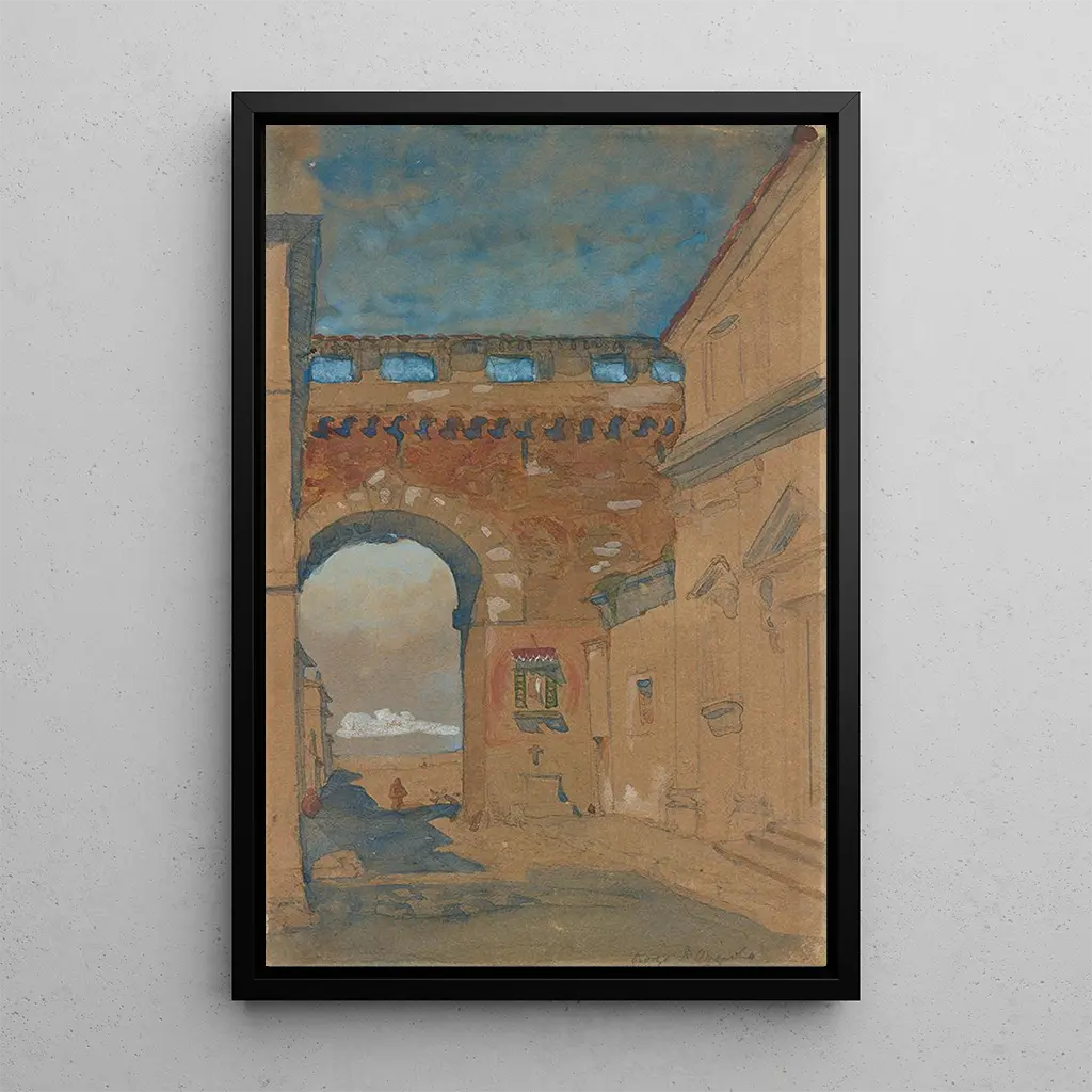 La taidegrafiikka de la Vue depuis le Borgo Sant'Angelo par James Holland nous transporte au cœur de l'Italia, offrant un panorama à couper le souffle. Cette œuvre capture la beauté des paysages vallonnés, où la lumière joue avec les ombres des bâtiments historiques. Les teintes douces et les nuances délicates de l’aquarelle créent une atmosphère paisible, invitant à la contemplation. Holland réussit à transmettre la sérénité de ce lieu emblématique, où chaque détail, des toits en tuiles aux arbres verdoyants, est rendu avec une précision remarquable. Cette toile évoque un sentiment de voyage et d’évasion, permettant au spectateur de s’immerger dans la beauté italienne.