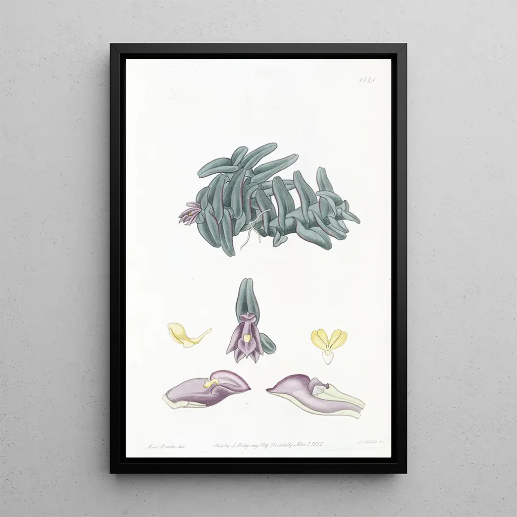 "Nanodes purppura" taidegrafiikan uudelleenluomus upottaa meidät elinvoimaiseen maailmaan, jossa värit kietoutuvat herkästi toisiinsa. Violetti ja vaaleanpunainen sävyt kukoistavat kankaalla, luoden sekä pehmeän että kiehtovan ilmapiirin. Akvarellitekniikka, jota käyttää Sydenham Edwards, mahdollistaa terälehtien keveyden ja läpinäkyvyyden välittämisen, samalla leikkien valon kanssa. Jokainen yksityiskohta on huolellisesti työstetty, kutsuen katsojan ihailemaan tämän kukkaisen kauneuden ohikiitävää olemusta. Tämä teos herättää rauhan ja mietiskelyn tunteen, kuin olisimme salaisen puutarhan sydämessä.