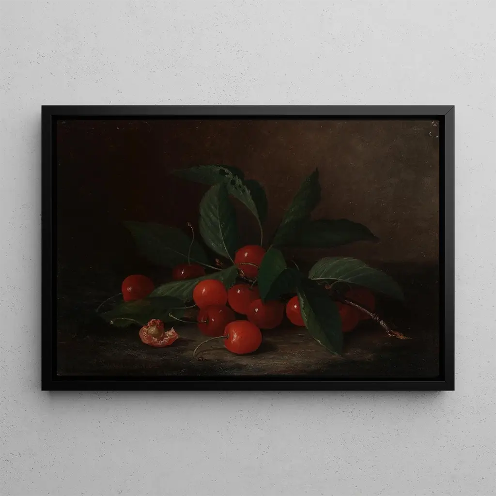 Dans cette œuvre vibrante, Paul Lacroix capture l'essence même de la nature à travers une composition riche en détails. Les cerises, d'un rouge éclatant, sont mises en valeur par un fond sombre qui accentue leur brillance. La technique de la peinture à l'huile permet de créer des textures délicates, rendant presque palpable la chair juteuse des fruits. L'atmosphère générale de la toile évoque une sensation de fraîcheur et de vitalité, invitant le spectateur à apprécier la beauté éphémère de la nature. Chaque élément est soigneusement disposé, témoignant d'une maîtrise technique et d'une sensibilité artistique qui font de cette œuvre un véritable chef-d'œuvre.