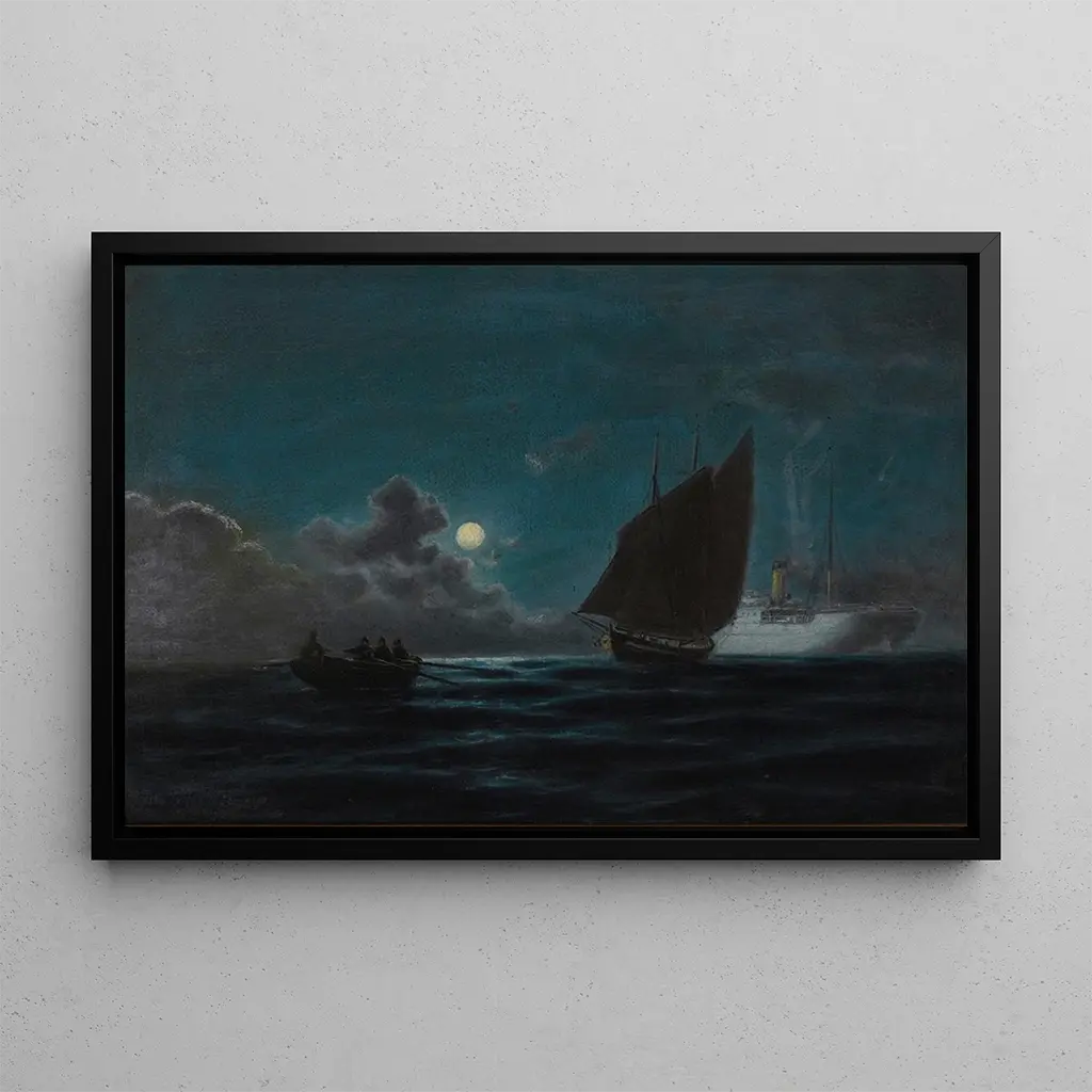 Navires au clair de lune : une danse poétique sur les flots nocturnes La reproduction Navires au clair de lune d'Emilios Prosalentis évoque une scène maritime empreinte de sérénité. Les bateaux, délicatement éclairés par la lumière lunaire, semblent flotter sur une mer calme, tandis que le ciel étoilé ajoute une dimension mystique à l'ensemble. Les nuances de bleu et d'argent se mêlent harmonieusement, créant une atmosphère apaisante et contemplative. La technique de Prosalentis, caractérisée par des coups de pinceau fluides et précis, donne vie à cette œuvre, invitant le spectateur à s'immerger dans ce paysage nocturne enchanteur. Emilios Prosalentis : un maître du paysage maritime Emilios Prosalentis, peintre grec du XIXe siècle, est reconnu pour ses représentations de la mer et des paysages côtiers. Influencé par le romantisme, son œuvre se distingue par une attention particulière aux effets de lumière et aux reflets sur l'eau. Prosalentis a su capturer l'essence de la mer Méditerranée, tout en intégrant des éléments de la tradition artistique européenne. Sa carrière, marquée par des expositions à travers l'Europe, a contribué à faire connaître l'art maritime grec, plaçant ainsi Prosalentis comme une figure importante de son époque. Une acquisition décorative aux multiples atouts La reproduction du tableau Navires au clair de lune est une pièce décorative idéale pour apporter une touche de sérénité à votre intérieur. Que ce soit dans un salon, un bureau ou une chambre, cette toile évoque une atmosphère paisible et rêveuse. Sa qualité d'impression garantit une fidélité des couleurs et des détails, permettant de profiter pleinement de la beauté de l'œuvre originale. Avec son attrait esthétique indéniable, cette reproduction saura séduire les amateurs d'art et enrichir votre décoration intérieure.