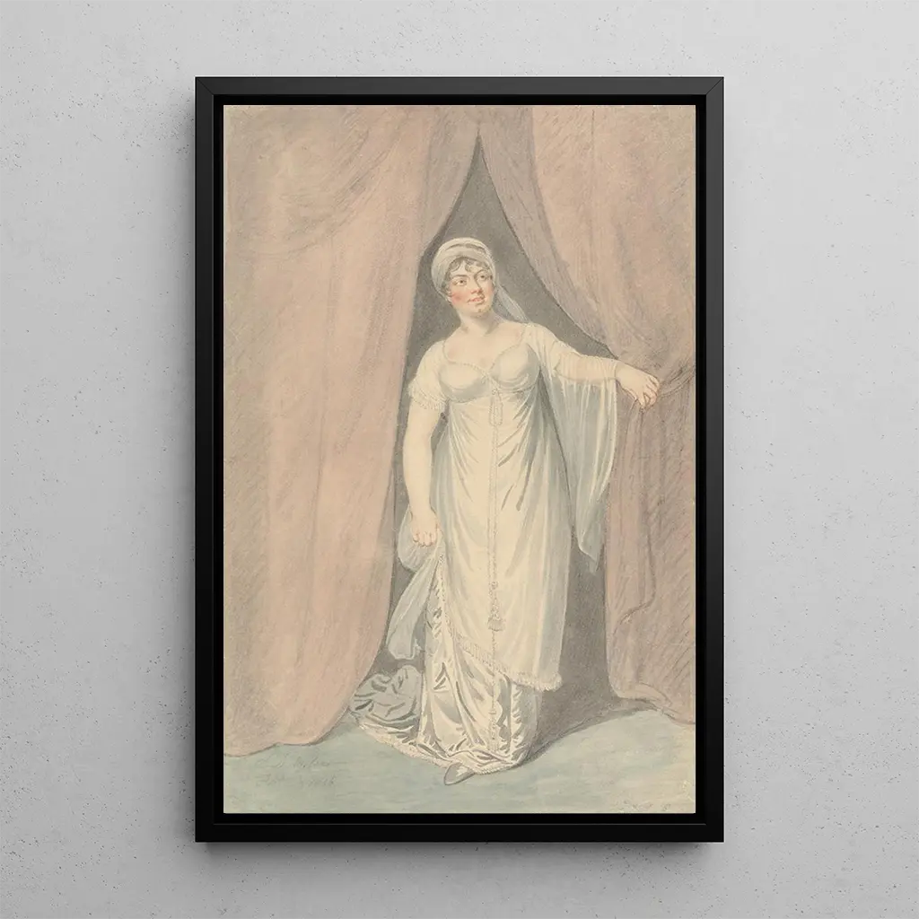 Tässä taidegrafiikassa, joka esittää "Yksi näyttelijä", Samuel de Wilde vangitsee naisellisuuden olemuksen poikkeuksellisen hienovaraisesti. Kompositio korostaa eleganttia naisfiguuria, joka on verhottu ylellisiin kankaisiin, jotka vaikuttavat lähes tuntuvilta. Värit, rikkaat ja eloisat, luovat sekä intiimin että teatraalisen tunnelman, kun taas valo näyttelee keskeistä roolia, korostaen kasvojen hienovaraisia piirteitä. Taiteilijan tekniikka, joka yhdistää realismia ja romantiikkaa, luo vahvan emotionaalisen yhteyden katsojaan, kutsuen pitkäkestoiseen pohdintaan tästä teoksesta.