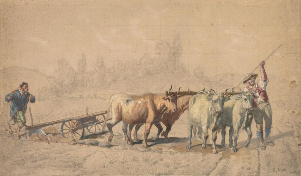 Neljä härkää vetämässä muokkaa - Constant Troyon