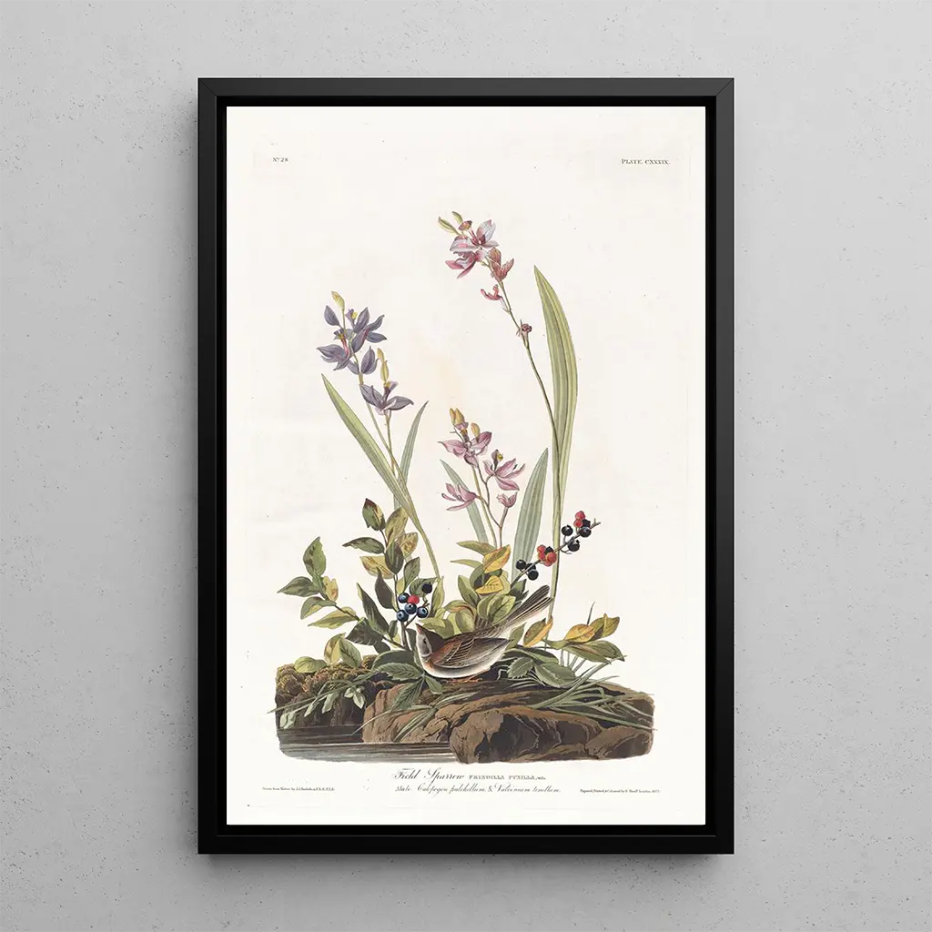 John James Audubonin teos "Bruant des champs" on todellinen kunnianosoitus lintujen kauneudelle. Tämä teos, joka on toteutettu poikkeuksellisen huolellisesti, esittelee loistavansävyisen bruantin, joka vaihtelee kirkkaan keltaisen ja ruskean maanläheisen sävyn välillä. Sävellys on huolellisesti tasapainotettu, ja taustalla on herkkä maisema, joka muistuttaa niittyjen lempeydestä. Audubonin tekniikka, joka yhdistää akvarellin ja piirtämisen, antaa tälle taidegrafiikka-levykkeelle elävän ja dynaamisen tunnelman, kutsuen katsojan sukeltamaan luonnon maailmaan, jossa nämä linnut elävät.