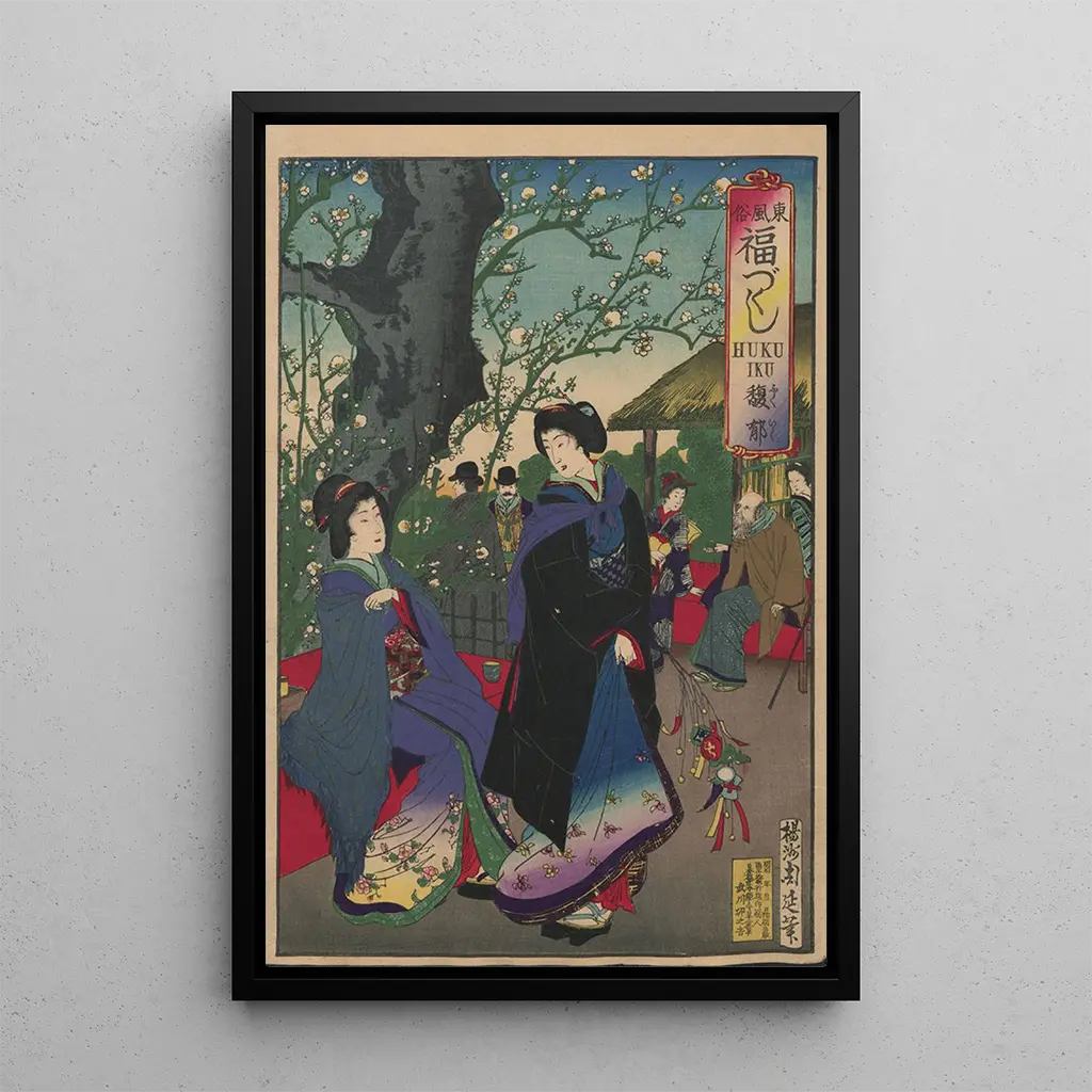 Toyohara Chikanobun "L'Album de Nishikie Pl24" -teos johdattaa meidät värikkääseen ja yksityiskohtiin rikkaaseen maailmaan. Tämä taidegrafiikka korostaa tyylikkäitä hahmoja, jotka pukeutuvat perinteisiin kimonoihin ja liikkuvat rauhallisessa maisemassa. Kirkkaat värit ja hienostuneet kuviot sulautuvat harmonisesti, luoden sekä dynaamisen että rauhoittavan tunnelman. Ukiyo-e-tyylinen paperiprintti mahdollistaa valon ja tekstuurien tarkkaan tallentamisen, kutsuen katsojan uppoutumaan tämän vanhan Japanin arkipäivän kohtauksen maailmaan.