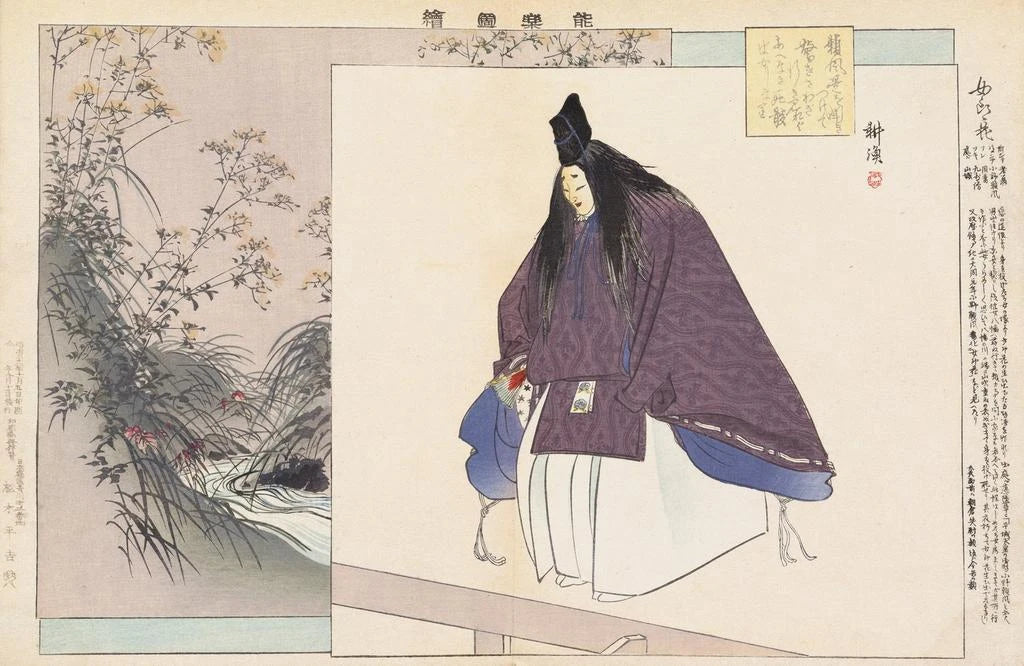 Kōgyo Tsukioka, syntynyt vuonna 1869, on japanilaisen etsaustaidin mestari ja innokas Nō-teatterin puolestapuhuja. Hän kasvoi rikkaassa taiteellisessa perinteessä ja sai vaikutteita Edo-kauden suurilta mestareilta, onnistuen sisällyttämään teoksiinsa myös moderneja elementtejä. 1900-luvun alussa aktiivinen Tsukioka omistautui Nō-näytelmien kohtauksien ikuistamiseen, osaltaan säilyttäen tämän ainutlaatuisen taidemuodon. Hänen työnsä ei ole vain kunnianosoitus perinteelle, vaan myös ihmisten tunteiden tutkimista, mikä tekee hänestä keskeisen hahmon japanilaisen taiteen historiassa.