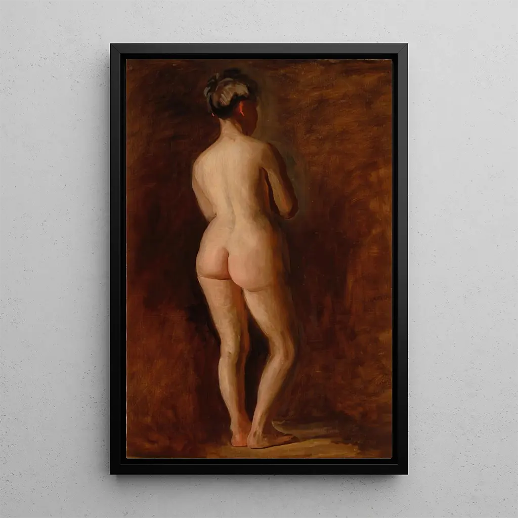 Tässä ikonisessa teoksessa Thomas Eakins vangitsee naisellisen alastonkuvan eleganssin ja sensuellisuuden, nähtynä selästä. Kompositio korostaa kehon hienovaraisia kaaria, kun taas valo leikkii hienovaraisesti iholla, luoden varjojen ja valojen leikin, joka korostaa figuurin kolmiulotteisuutta. Värit, pääasiassa lämpimiä sävyjä, luovat intiimin ja pohdiskelevan tunnelman, kutsuen katsojan uppoutumaan hetken kauneuteen. Taiteilijan tekniikka, joka yhdistää realismia ja impressionismia, tarjoaa syvyyttä tähän esitykseen, tehden tästä taidegrafiikasta todellisen mestariteoksen.