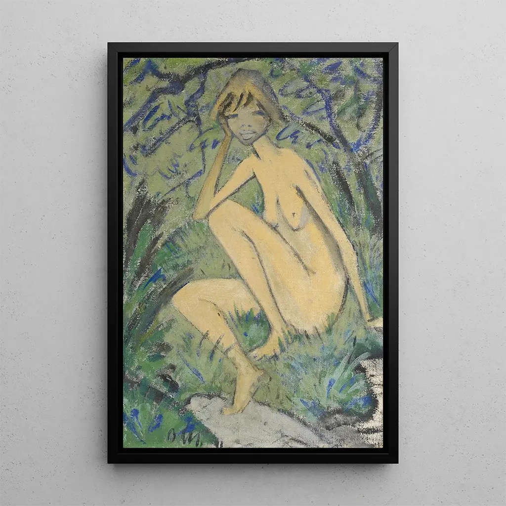 Otto Muellerin teos Nu assis dans le paysage on juhla ihmisen kehon kauneudesta symbioosissa luonnon kanssa. Kompositio korostaa naisfiguuria, joka on hienovaraisesti aseteltu luonnolliseen ympäristöön, jossa pehmeät värit ja orgaaniset muodot kohtaavat. Vihreän ja maan sävyt herättävät rauhan tunteen, kun taas mallin asento viestii sekä haavoittuvuutta että voimaa. Tämä teos huokuu rauhallista, melkein mietiskelevää ilmapiiriä, kutsuen katsojan uppoutumaan tähän hetkeen, joka on pysäytetty ihmisen ja hänen ympäristönsä välillä.