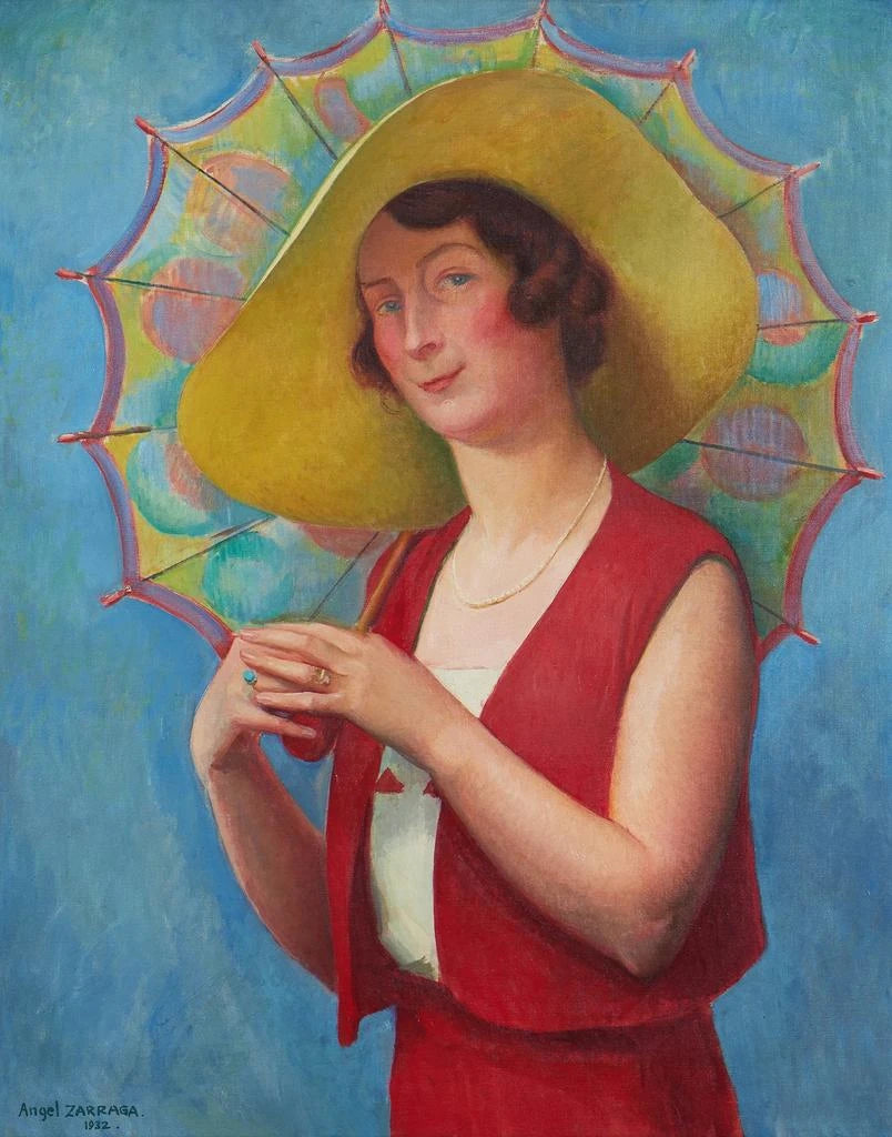 Zárraga pyrkii maalaamaan rauhallisia ja sisäistä voimaa heijastavia hahmoja. Teoksessa Jeune femme à l’ombrelle hän yhdistää klassisen muotokuvan viehätyksen modernistiseen herkkyyteen, kunnioittaen hiljaista ja ajattomasti kaunista naiseutta.