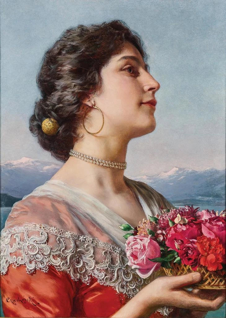 Władysław Czachórski, 1800-luvulla aktiivinen, on puolalainen taidemaalari, jonka teokset heijastavat hänen aikansa sosiaalisia ja esteettisiä huolia. Hän kasvoi ympäristössä, jossa realismi ja romantiikka elivät rinnakkain, ja osasi hyödyntää näitä vaikutteita luodakseen herkästi vaikuttavia muotokuvia. Hänen työnsä korostaa usein naisfiguureja, jotka symboloivat kauneutta ja haurautta. Ottamalla vaikutteita arkipäivästä ja puolalaisista perinteistä Czachórski onnistui ikuistamaan hellyyden ja yksinkertaisuuden hetkiä, tehden nuoren kukkakauppiaan taidegrafiikasta hänen tuotantonsa ikoni.