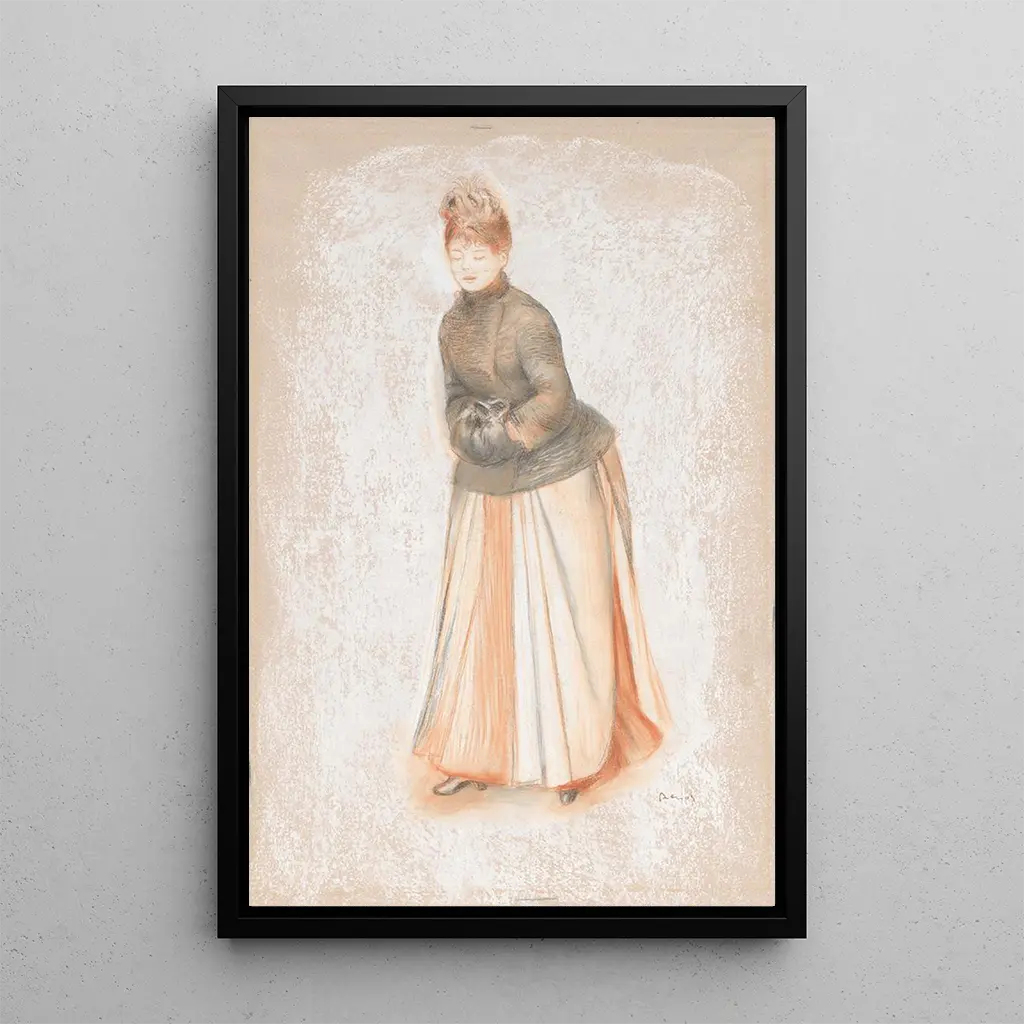 Tässä kiehtovassa teoksessa Pierre-Auguste Renoir kuvaa tyylikkään nuoren naisen, joka on pukeutunut hienostuneeseen mekkoon ja pitää turkiskäsivartta. Pehmeät ja kirkkaat värit, jotka ovat tyypillisiä impressionismille, luovat lämpimän ja intiimin tunnelman. Valo näyttelee keskeistä roolia, valaisten nuoren naisen kasvoja ja korostaen hänen vaatetuksensa tekstuureja. Sävellys, jossa taustan epätarkkuus houkuttelee katsojaa keskittymään pääaiheeseen, samalla herättäen liikkeen ja elämän tunteen. Tämä taidegrafiikka "Nuori nainen käsivartaan vasten" on todellinen kutsu naiseuden kauneuden ihailuun.