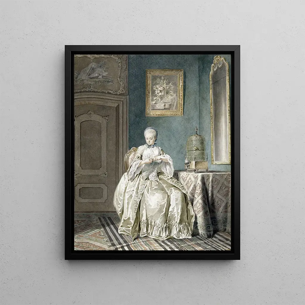 Jacobus Buys, hollantilainen 1700-luvun taidegrafiikan taiteilija, tunnetaan genrekuvistaan ja arkipäivän muotokuvistaan. Teoksessa 'Nuori ompelija' hän vangitsee nuoren tytön työskentelyn arvokkuuden ja keskittymisen, käyttäen pehmeää valoa korostamaan kankaan yksityiskohtia ja kasvojen hienovaraisia ilmeitä. Tämä teos heijastaa erityistä herkkyyttä arkipäivän eleiden kauneudelle, kunnioittaen kodin elämää. Buysin tyyli, sekä realistinen että runollinen, sopii hyvin modernien sisätilojen koristeluun, lisäten inhimillisyyttä ja lämpöä. Tutustu tämän taidegrafiikan reproduktion Artem Legrandilla.