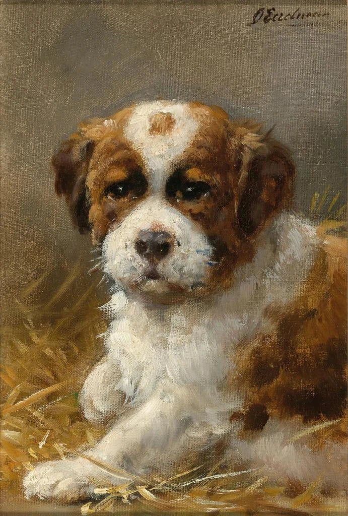 Otto Eerelman, 1800-luvulla aktiivinen taiteilija, on kuuluisa eläinmuotokuvistaan, erityisesti koirista. Romanttisen liikkeen vaikutuksesta hän onnistuu vangitsemaan kohteidensa ulkonäön lisäksi myös heidän luonteensa ja olemuksensa. Eerelman on onnistunut vakiinnuttamaan asemansa valitsemanaan taiteilijana eläinten ystäville, kiitos kyvystään tehdä jokaisesta olennosta ainutlaatuisen ja elävän. Hänen intohimonsa koiriin, erityisesti majesteettisiin rotuihin kuten Saint-Bernard, on mahdollistanut hänen luoda ajattomia teoksia, jotka edelleen koskettavat katsojia tänä päivänä.