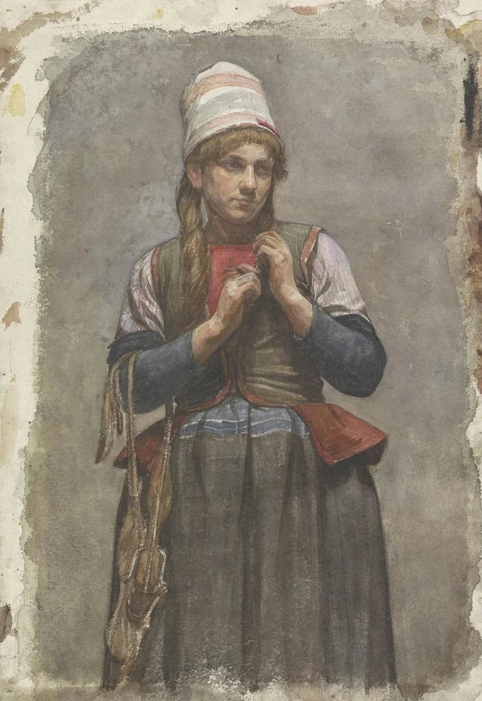 Taidetuloste | Nuori tyttö seisoo perinteisessä asussa luistimet jalassa - Jan Veth