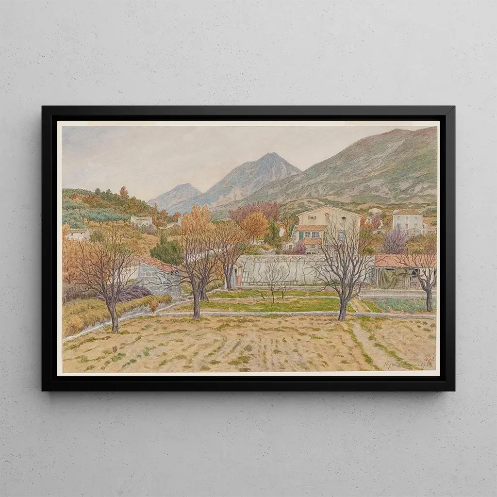 Environs de Nyons : une ode à la lumière et à la couleur. Henri Rivière meidät kuljettaa "Environs de Nyons" -teoksen maailmaan, jossa auringonvalo hyväilee Provencen maisemia. Tämä taidegrafiikka erottuu eloisilla sävyillään ja dynaamisella koostelmallaan, vangiten luonnon olemuksen. Rivière, käyttäen vesiväritekniikkaa, luo valoisia ja ilmavia tunnelmia, joissa jokainen sivellinvedos näyttää tanssivan kankaalla. Mutkikkaat kukkuloiden ja laventelipeltojen muodot herättävät rauhan ja pakomatkan tunteen, tehden tästä taidegrafiikasta todellisen kutsun Provencen ihmeiden ihailuun. Henri Rivière : impressionistisen maiseman mestari. Ranskalainen taiteilija, joka oli aktiivinen 1800-luvun lopulla, Henri Rivière tunnetaan innovatiivisesta lähestymistavastaan maisemaan. Impressionistien vaikutuksesta hän osasi vangita luonnon valon ja värit ainutlaatuisella herkkyydellään. Rivière oli myös edelläkävijä lithografian käytössä, mikä mahdollisti hänen teostensa levittämisen laajemmalle yleisölle. Hänen maisemansa, usein Provencen alueelta inspiroituneita, kertovat syvästä yhteydestä luontoon ja kauneuden etsinnästä, tehden hänestä tärkeän hahmon ranskalaisessa taiteessa aikanaan. Monipuolinen koristeellinen taidegrafiikka. "Environs de Nyons" -taidegrafiikan taidegrafiikka on täydellinen valinta niille, jotka haluavat tuoda väriä ja valoa sisustukseensa. Olipa kyseessä olohuone, toimisto tai makuuhuone, tämä kangas herättää Provencen elämänmakuista tunnelmaa. Tulostuslaatu takaa huomattavan uskollisuuden yksityiskohdille ja sävyille alkuperäisteoksessa, samalla tarjoten esteettisen viehätyksen. Sisällyttämällä tämän taidegrafiikan osaksi sisustustasi rikastat elinympäristöäsi taideteoksella, joka huokuu rauhaa ja luonnon kauneutta.