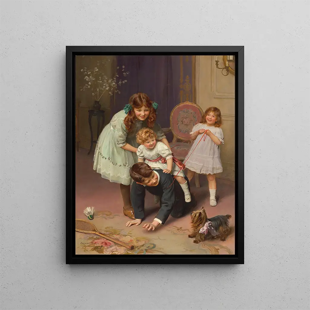 Laajan taiteen universumissa jotkut teokset onnistuvat vangitsemaan lapsuuden ja elämänilon ytimen. "Oh là là" Arthur John Elsleystä on yksi näistä teoksista, jotka herättävät hellästi ohikiitävät hetket viattomuudesta. Tämä kangas, elävä ja täynnä elämää, kuljettaa katsojan maailmaan, jossa lasten nauru kaikuu ja luonto kukoistaa taustalla. Tämän teoksen kautta Elsley kutsuu meitä uudelleen löytämään inhimillisten vuorovaikutusten kauneuden ja jaettujen hetkien taian, todellinen kunnianosoitus elämän yksinkertaisuudelle.