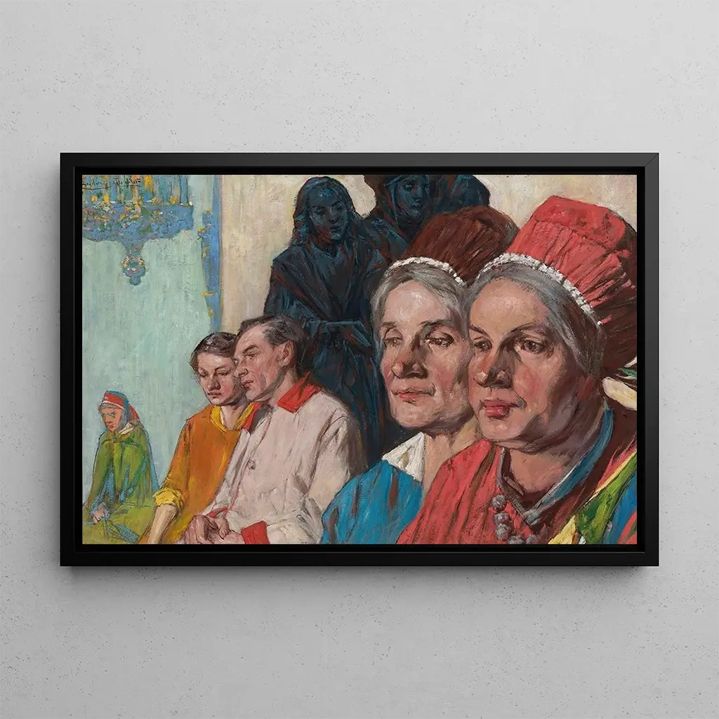 taidegrafiikka "Palvelus Levočassa" Ludwik Stasiakilta upottaa meidät hiljaisuuden ja henkisyyden tunnelmaan. lämpimät värit, pääosin ruskean ja kullan sävyissä, viittaavat hämärään kirkon valoon, kun taas uskovaisten kasvojen yksityiskohtainen kuvaus kertoo suuresta taiteellisesta herkkyydestä. koostumus, keskittyen papin täydessä seremoniallisessa toiminnassa, vetää katseen puoleensa ja kutsuu mietiskelyyn. jokainen elementti, huonekalut ja hahmojen vaatteet mukaan lukien, luo immersiivisen, lähes kosketeltavan tunnelman, jossa katsoja voi tuntea uskon ja yhteisön intensiteetin.