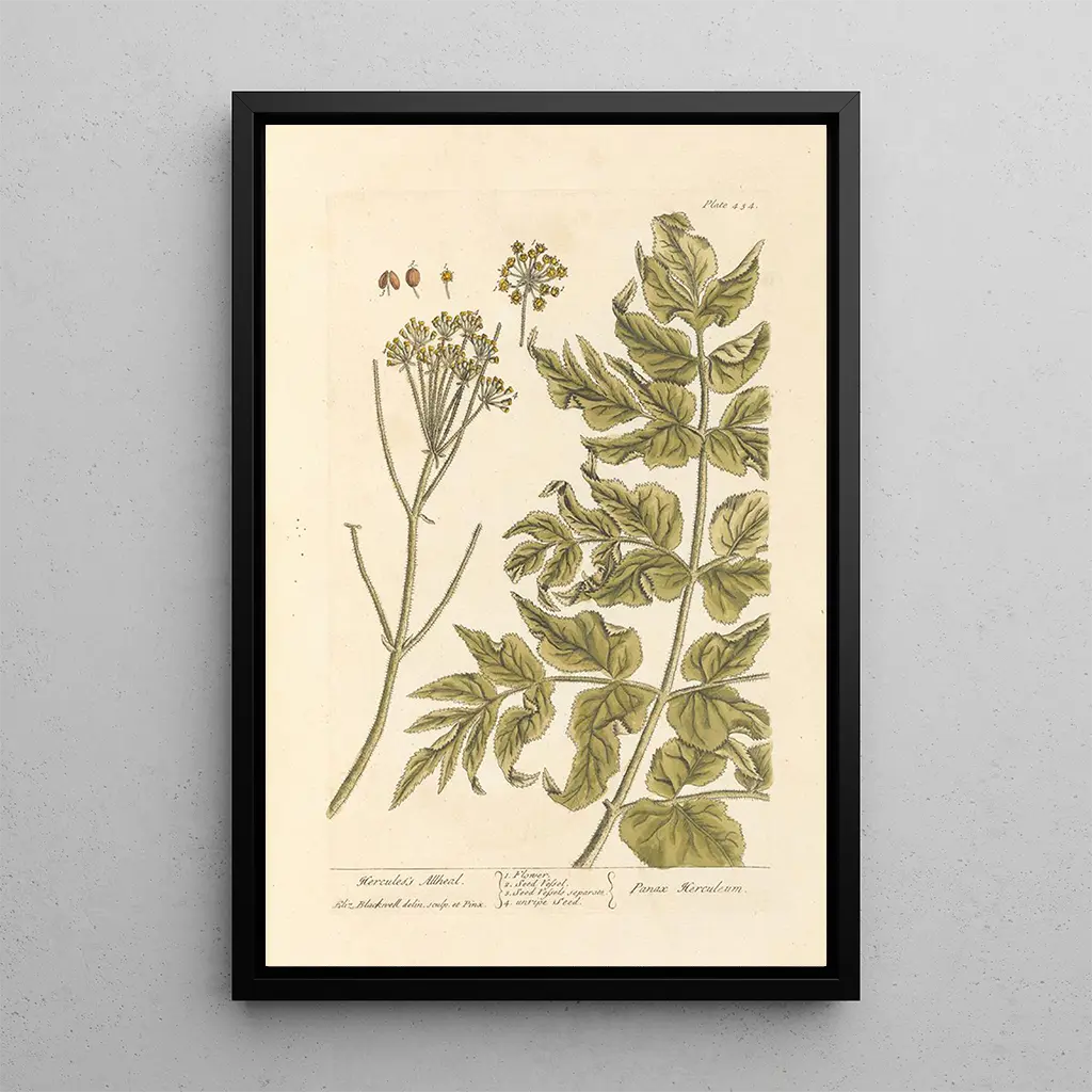 Elizabeth Blackwellin taidegrafiikka "Panacée d'Hercule" vie meidät kiehtovaan kasvitieteelliseen maailmaan. Tämä taulu, joka on täynnä yksityiskohtia, korostaa parantavaa ominaisuutta omaavaa kasvia, jota ympäröi kirkkaiden värien paletti, joka heijastaa luonnon elinvoimaa. Vihreän ja violetin sävyt sekoittuvat harmonisesti, luoden sekä rauhoittavan että dynaamisen tunnelman. Blackwellin käyttämä kaiverrustekniikka mahdollistaa jokaisen lehden ja terälehden tarkkuuden, kutsuen katsojan tutkimaan tämän ikonisen kasvin hienouksia.
