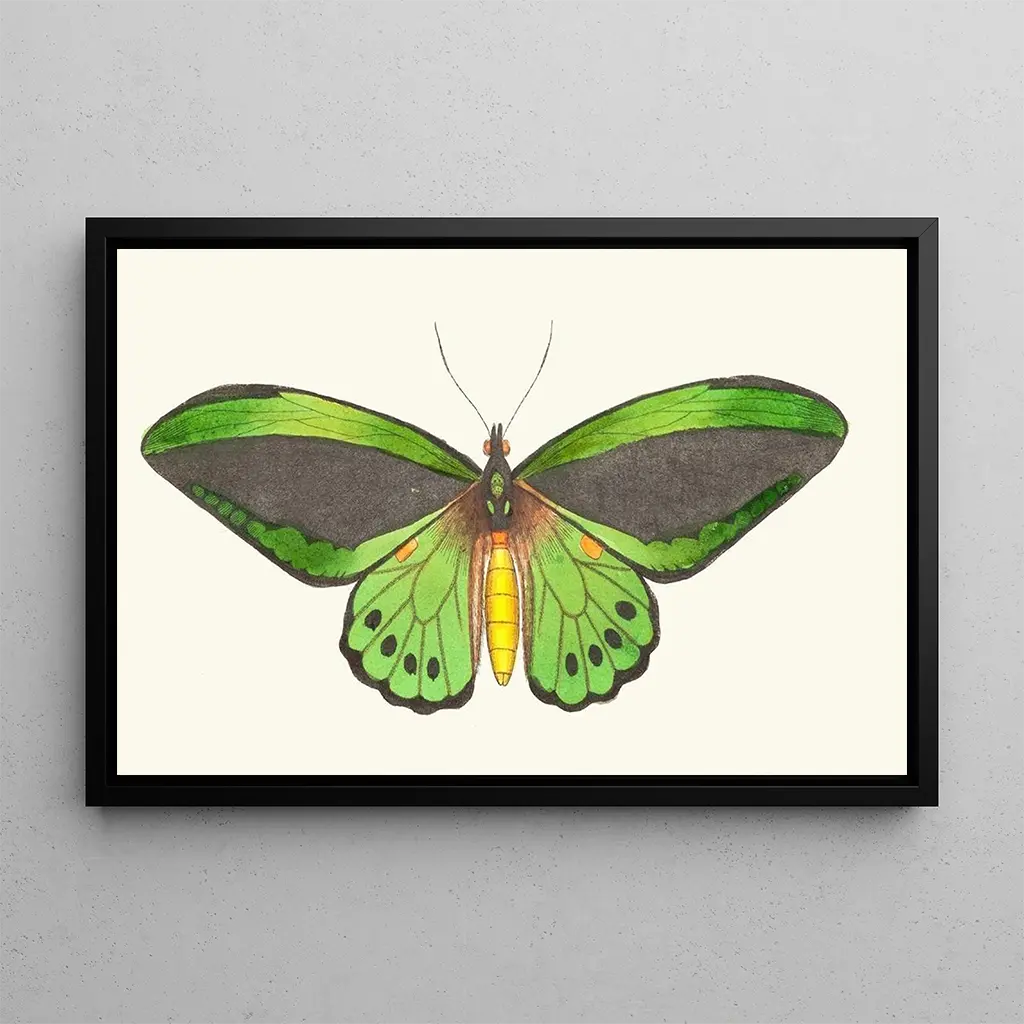Taidegrafiikka Papilio priamus, George Shawan ikoninen teos, johdattaa meidät elinvoimaisiin maailmoihin, joissa luonto kukoistaa. Tämä taidegrafiikka, esittäen majesteettisen perhosen, erottuu kirkkaiden vihreän, sinisen ja mustan sävyjen kontrastilla. Vesiväritekniikka, käytetty hienovaraisesti, antaa teokselle ilmavan ja herkkäluontoisen tunnelman. Perhosen siipien yksityiskohtaiset, lähes läpikuultavat, näyttävät vangitsevan valoa, kutsuen katsojan ihailemaan tämän olennon ohikiitävää kauneutta. Tämä taidegrafiikka muodostuu todelliseksi kunnianosoitukseksi luonnolle ja elämän hauraudelle.