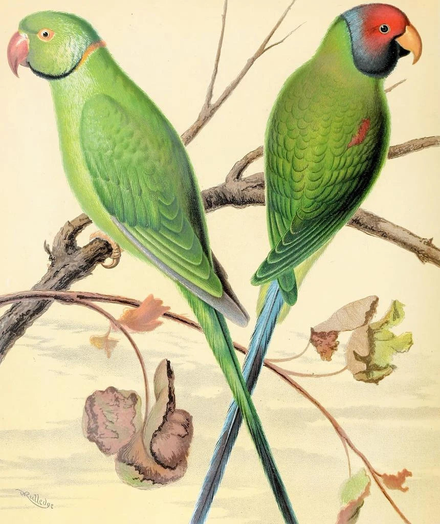 Taidetuloste | Papukaija rengaskaulalla, lilapääperhonen - W. A. Blakston